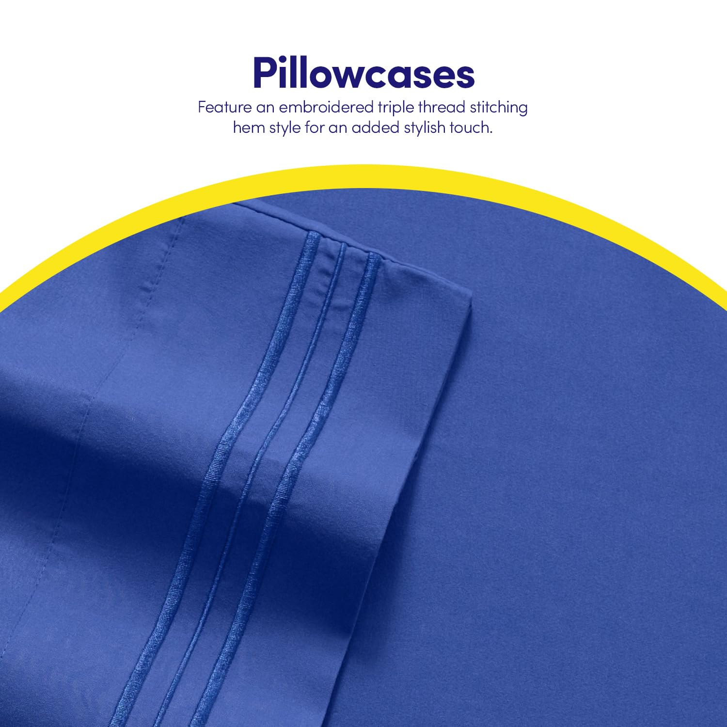 - ✅ ELEGANT TRIPLE LINE EMBROIDERY – Pillowcases feature a stylish triple-line embroidery for a touch of luxury. Available in California King, King, Queen, Full, Twin, Twin XL, Split King & RV Short Queen.