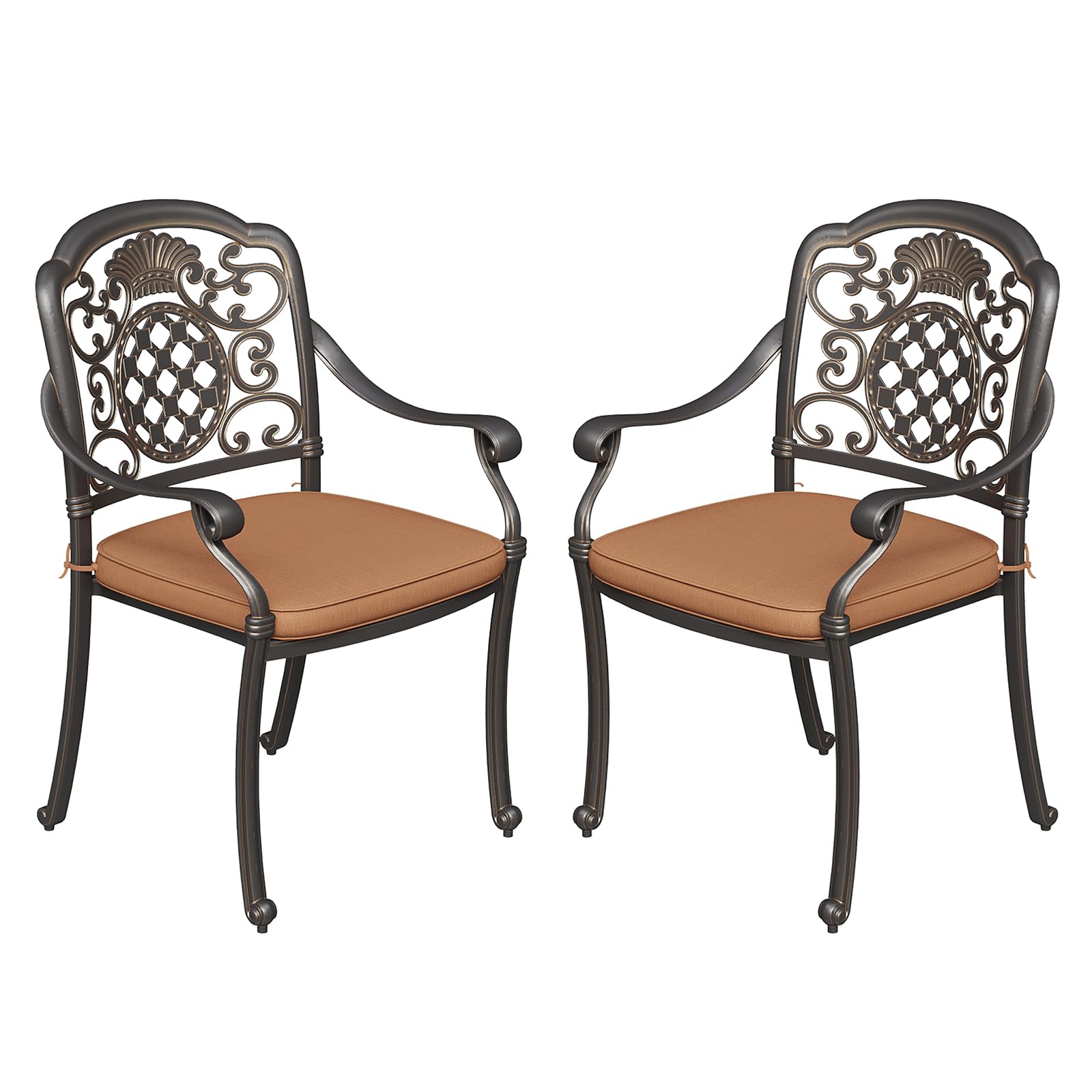 2 Piece Patio Dining Chairs with Cushions, Outdoor All-Weather Cast Aluminum Chairs, Patio Bistro Dining Chair Set of 2 for Garden Deck Backyard, Dark Bronze