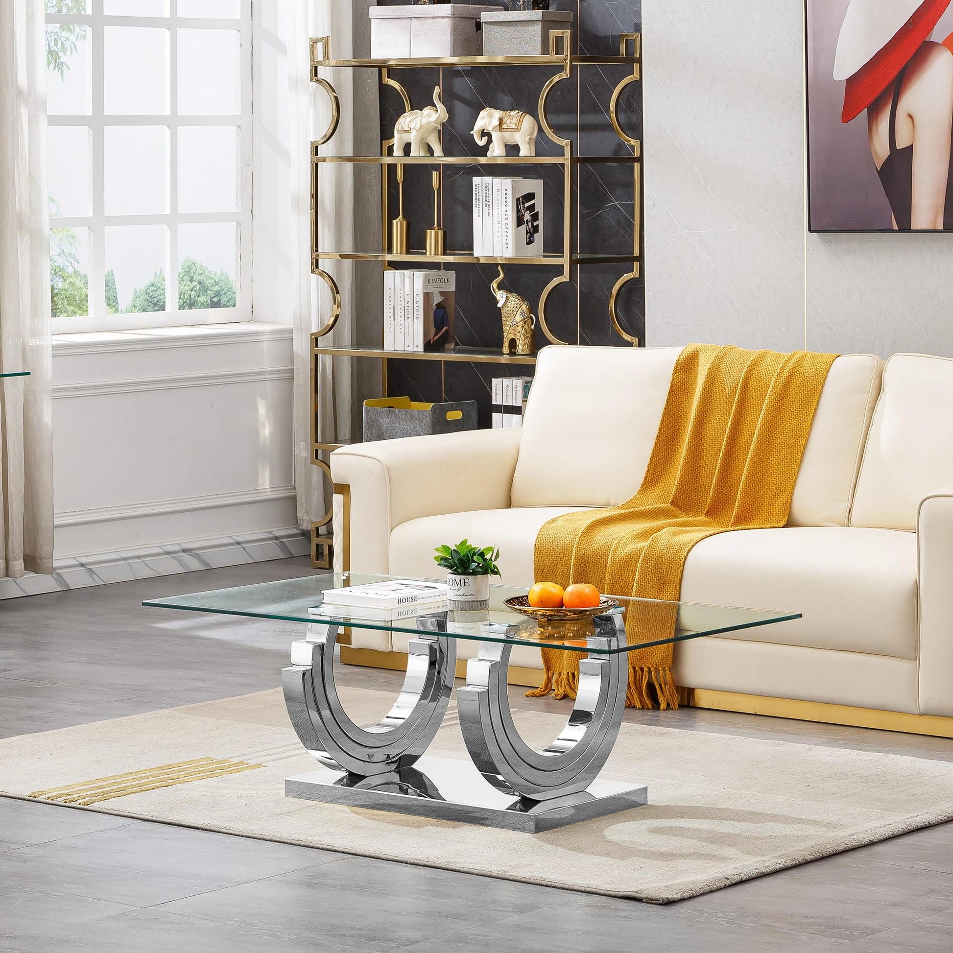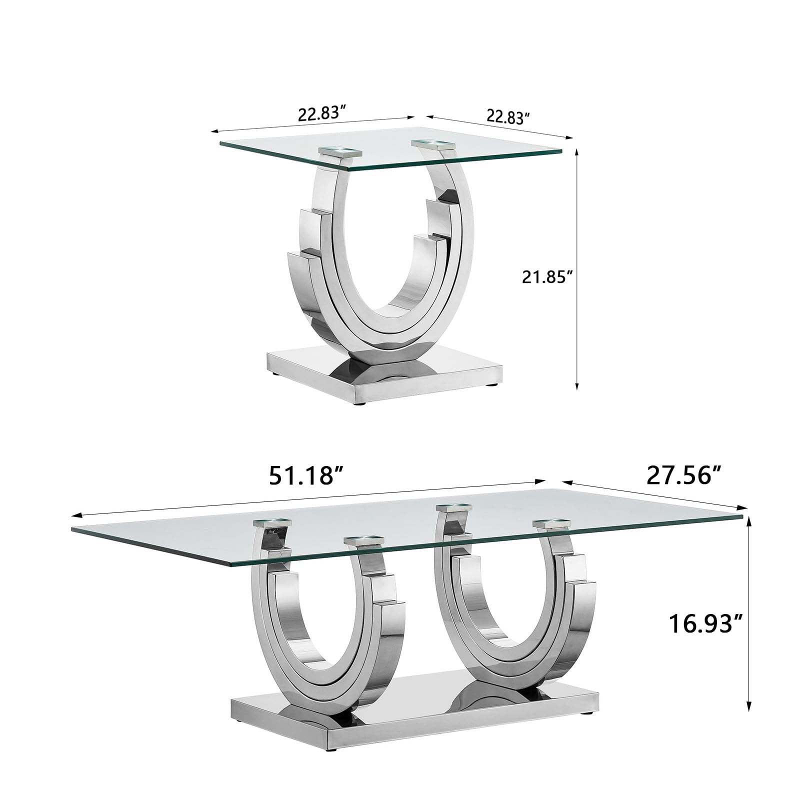 - 【Modern Living Room Table Sets】: This glass living room table set designed with a stainless steel frame(polished to 8K mirror effect finish) creates the glossy shine of the luxury look.This modern 2-piece table can be integrated into a variety of home decoration styles.
