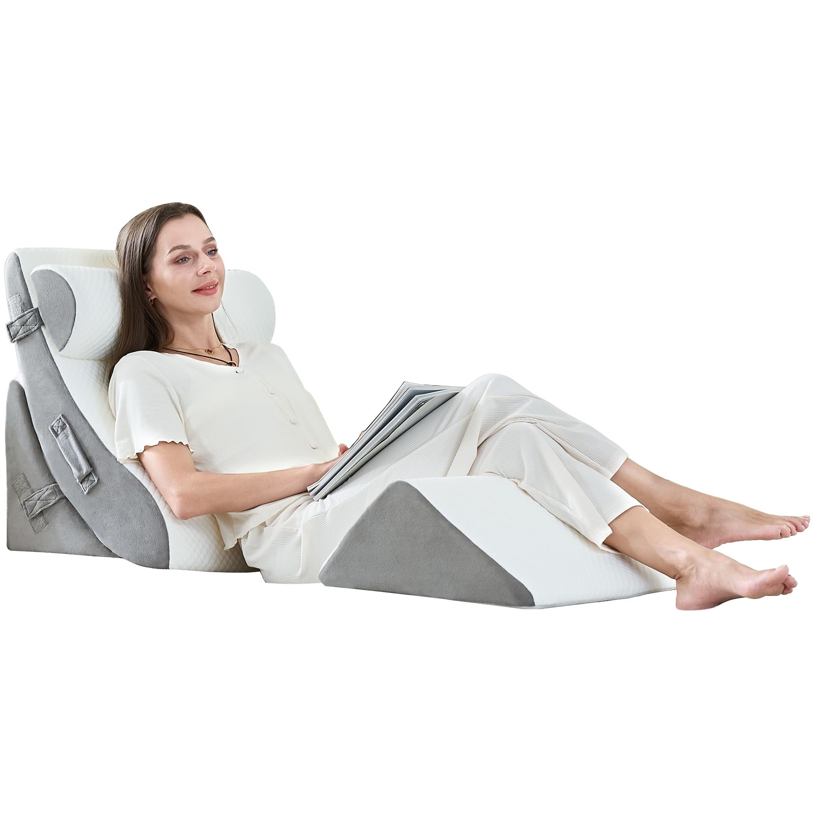 - 【Multi-Functional Support System】The adjustable reclining pillow set includes 4 adjustable pillows with different shapes. You can make a proper shape for sitting up, lying down and sleeping on with adjustable pillows, making it versatile for your diverse needs. Perfect for recovery after surgery/injury, alleviating acid reflux and improving sleep quality.