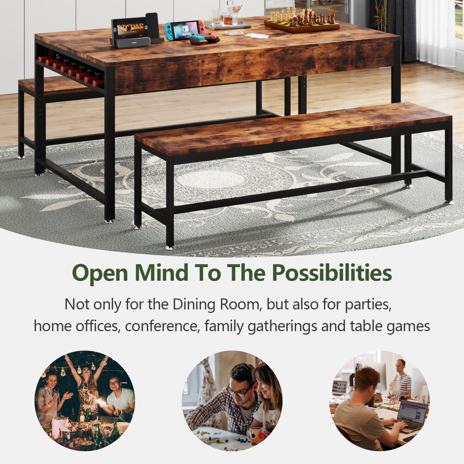 - Spacious Seating for Family Gatherings: This dining table set includes a generous 63' L x 31.5' W table and two matching benches, perfect for hosting family dinners comfortably with 6 people. The ample surface area ensures everyone has room to dine without feeling cramped, making it ideal for both casual meals and special occasions.