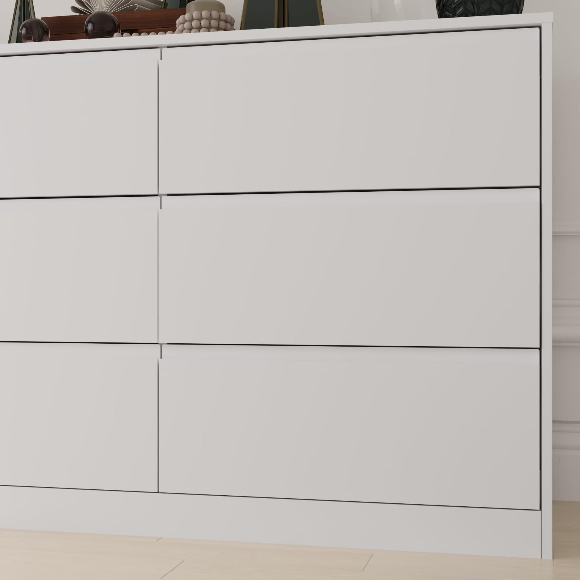 - 【Modern Style and Design】 This dresser has an elegant and stylish appearance. The unique handle-free beveled edge design combines simple style with excellent storage capacity. No need to install handles, more convenient and labor-saving. Match with any interior style, make your room look clean and bright, and show your taste.