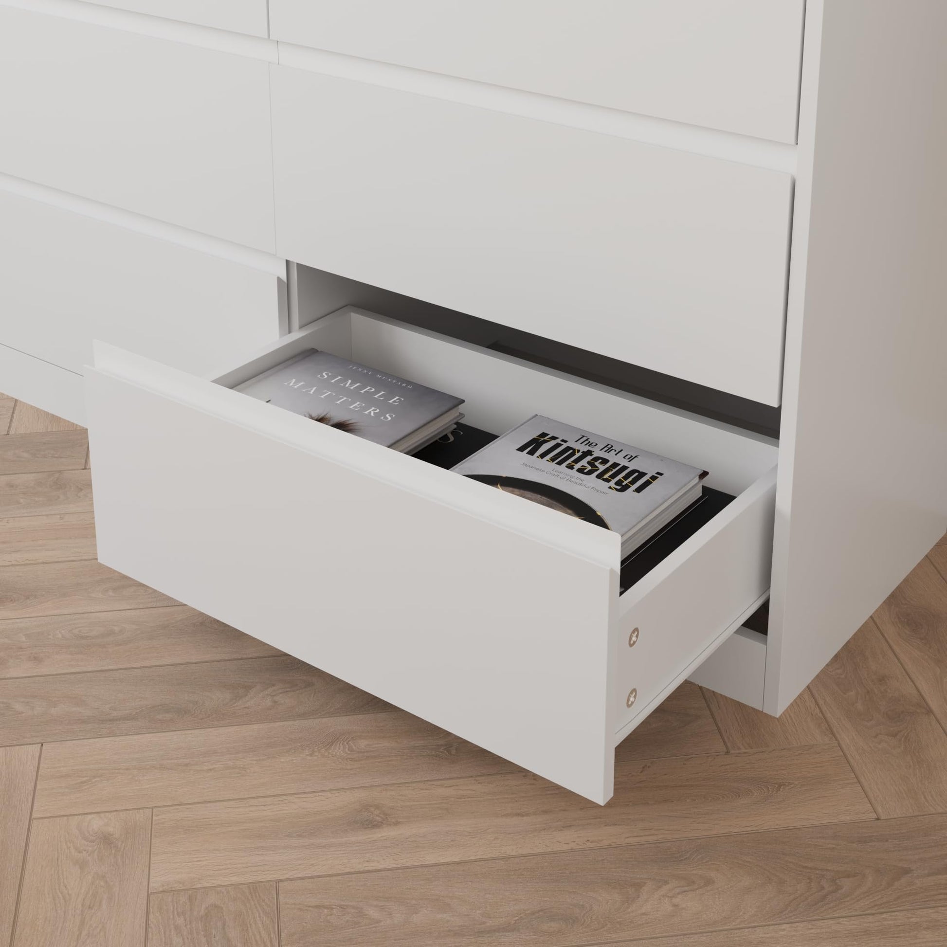 - 【Sturdy Structure】 Our dresser is made of high-quality MDF materials which ensures stability and durability. High-quality metal slide rails are easy to open and close, and the sturdy base design ensures the stability of the drawer dresser with strong load-bearing capacity. Waterproof and scratch-resistant, it has a long service life.