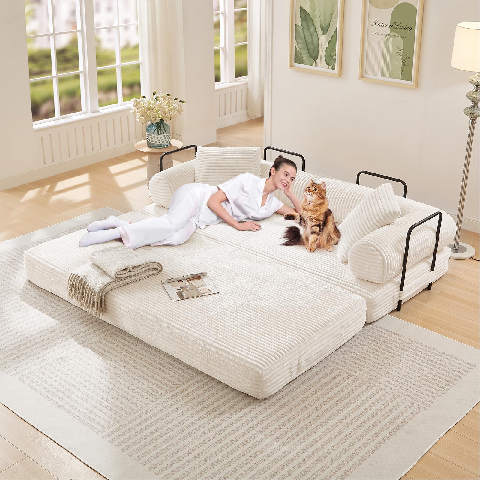 - Versatile Comfort Center: This convertible sofa bed transforms from a floor couch into a spacious queen-size bed, perfect for lounging, sleeping, and entertaining guests. In addition, it doubles as a fun play area for the little ones to keep them entertained