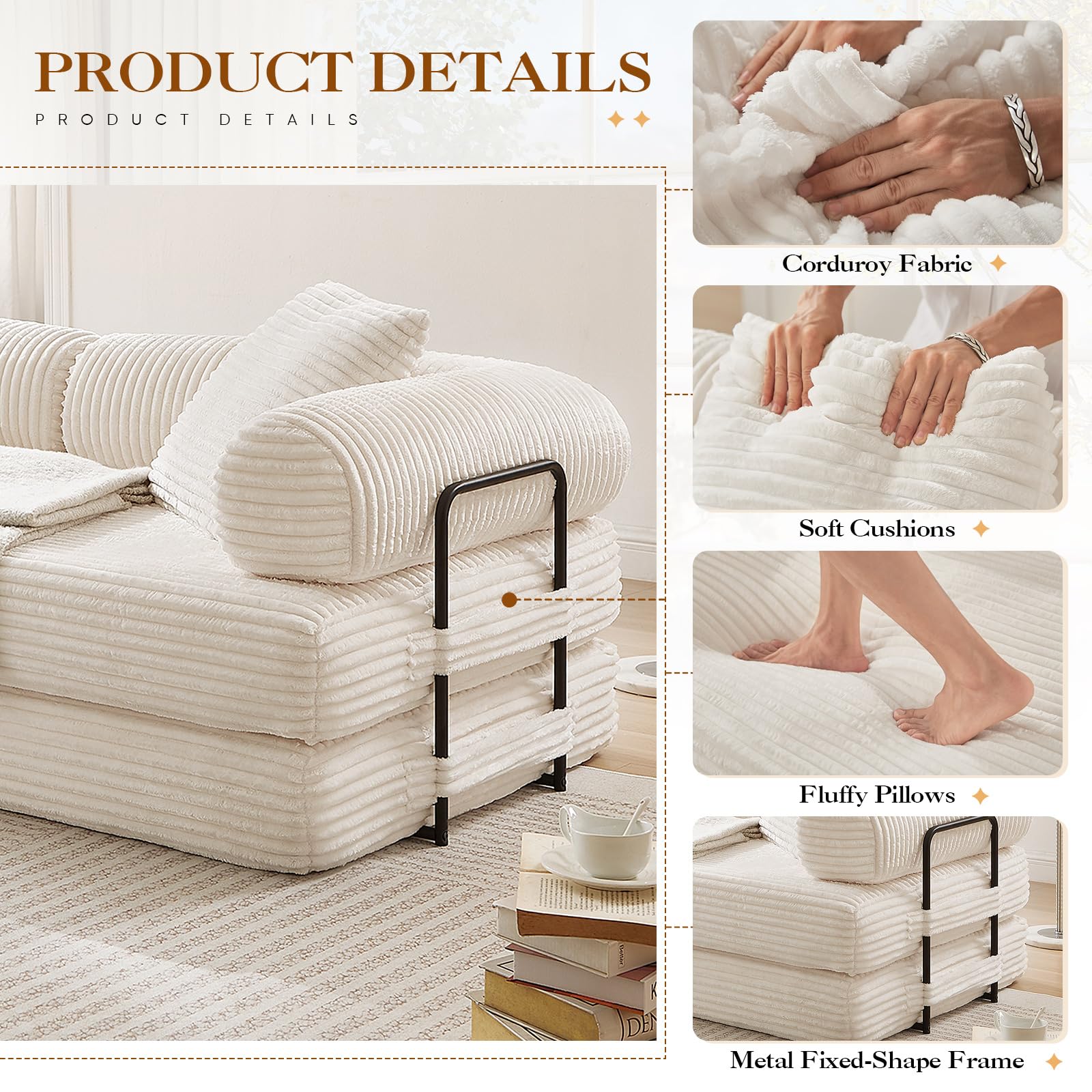 - Comfortable Corduroy Fabric: This foam couch features plush corduroy fabric that is soft, breathable, and adds warmth and tranquility to your home. We also provide 2 soft pillows for extra support