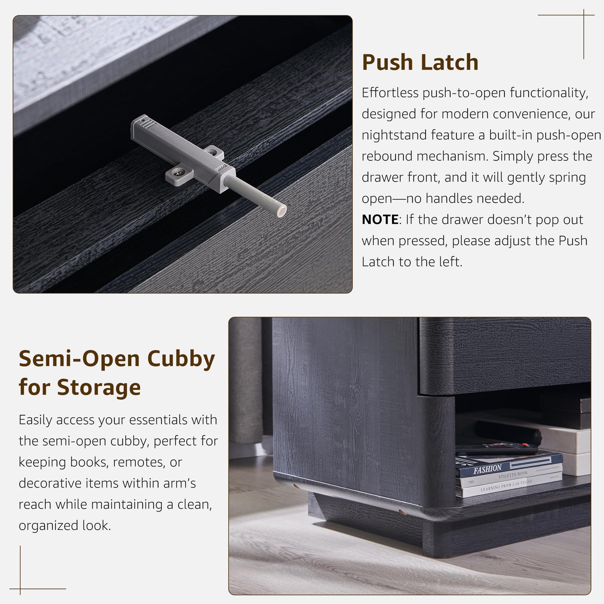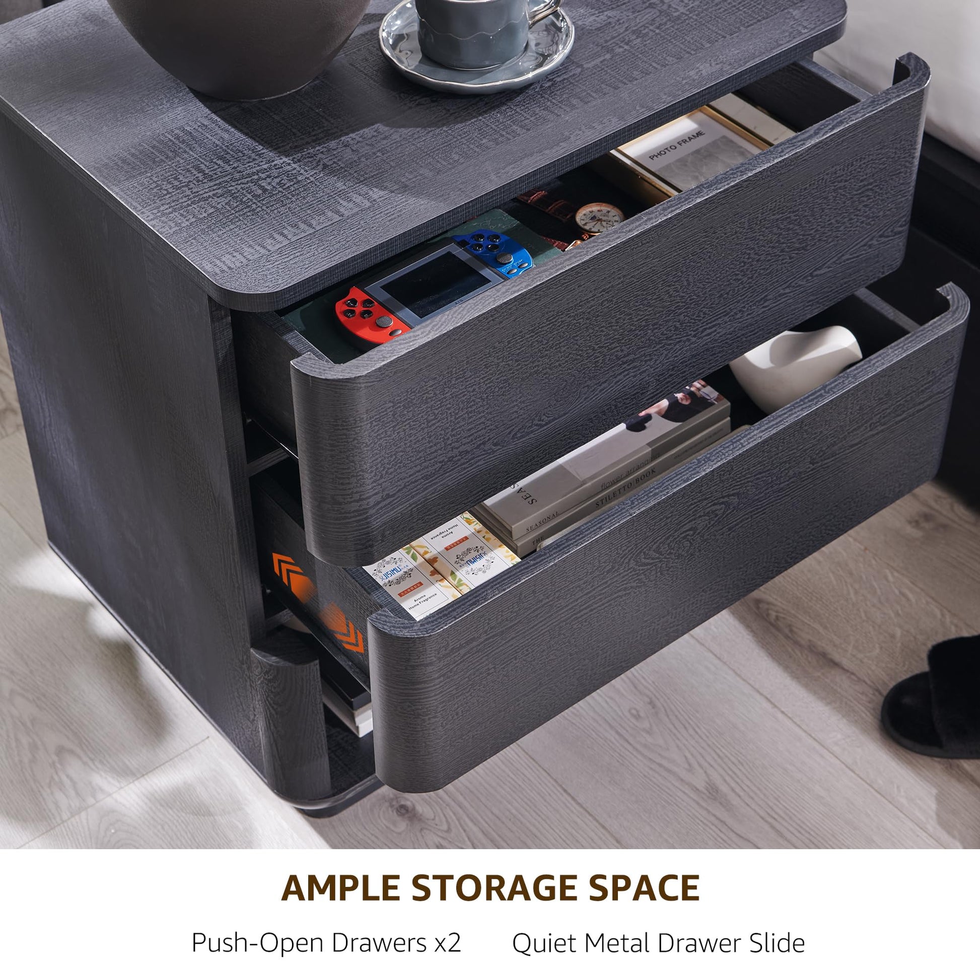 ACCOHOHO Nightstand with Charging Station, 22" Push-to-Open Bedside Table with 2 Storage Drawers, Large Modern End Table for Bedroom,Black