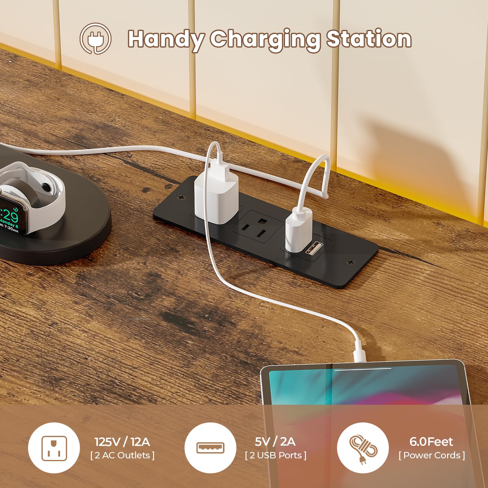 - Bulit-in Handy Charging Station: The tv stand dresser equiped with handy charging station with 2 AC outlets and 2 USB ports, provides for your PS5, Xbox, and gaming devices, also your router, electronics, phones, ipad and TVs, you can easily charge all your device in one place, keeping your room tidy.