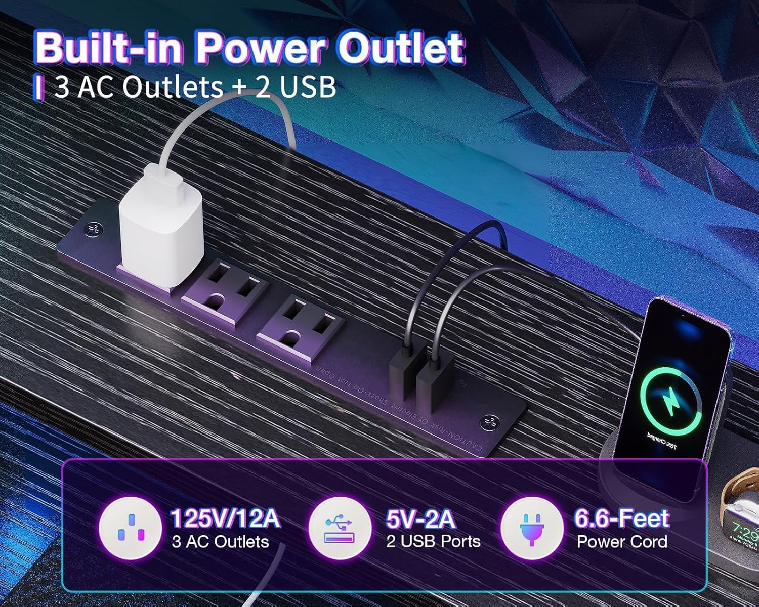 - 【USB Charging Ports & Power Outlets】Equipped with 3 power outlets and 2 USB charging ports, the 2 person gaming desk can simultaneously power 5 electronic devices like smartphones, gaming gear and Bluetooth devices when you are working, studying or playing games. Let this dual desk make your life more convenient.
