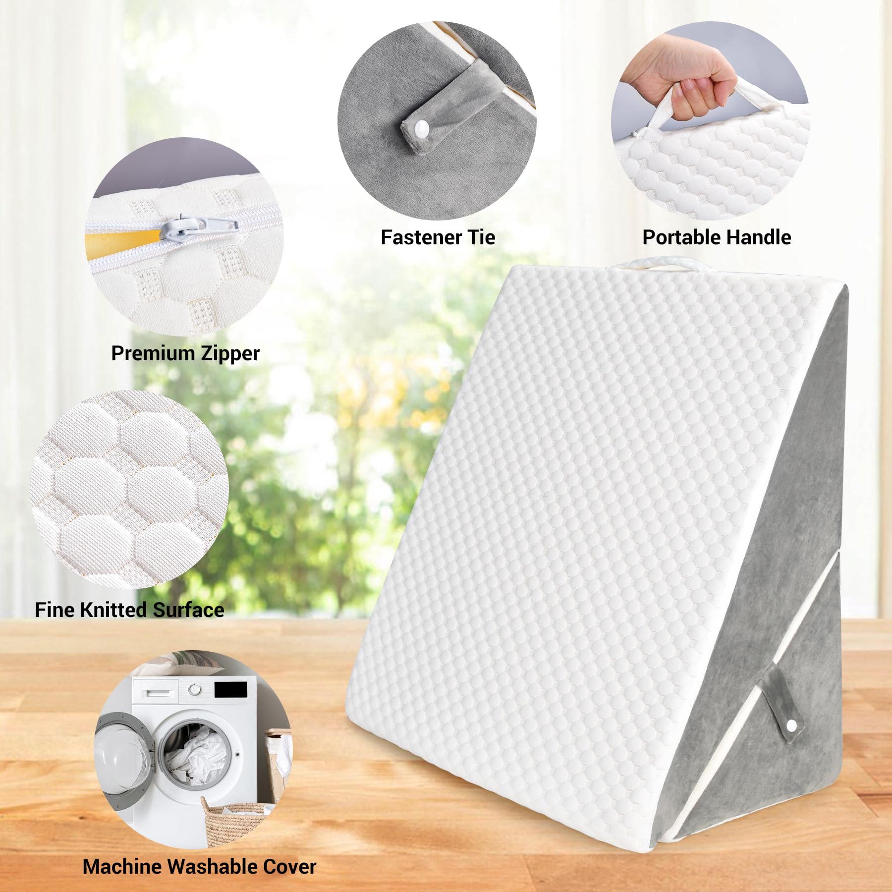 - Breathable and Removable Zippered Cover: The bed wedge pillow has a removable soft and breathable air layer pillowcase, which can be washed by hand or machine. Besides, with a handle, our foam wedge pillow is easy to carry and move around