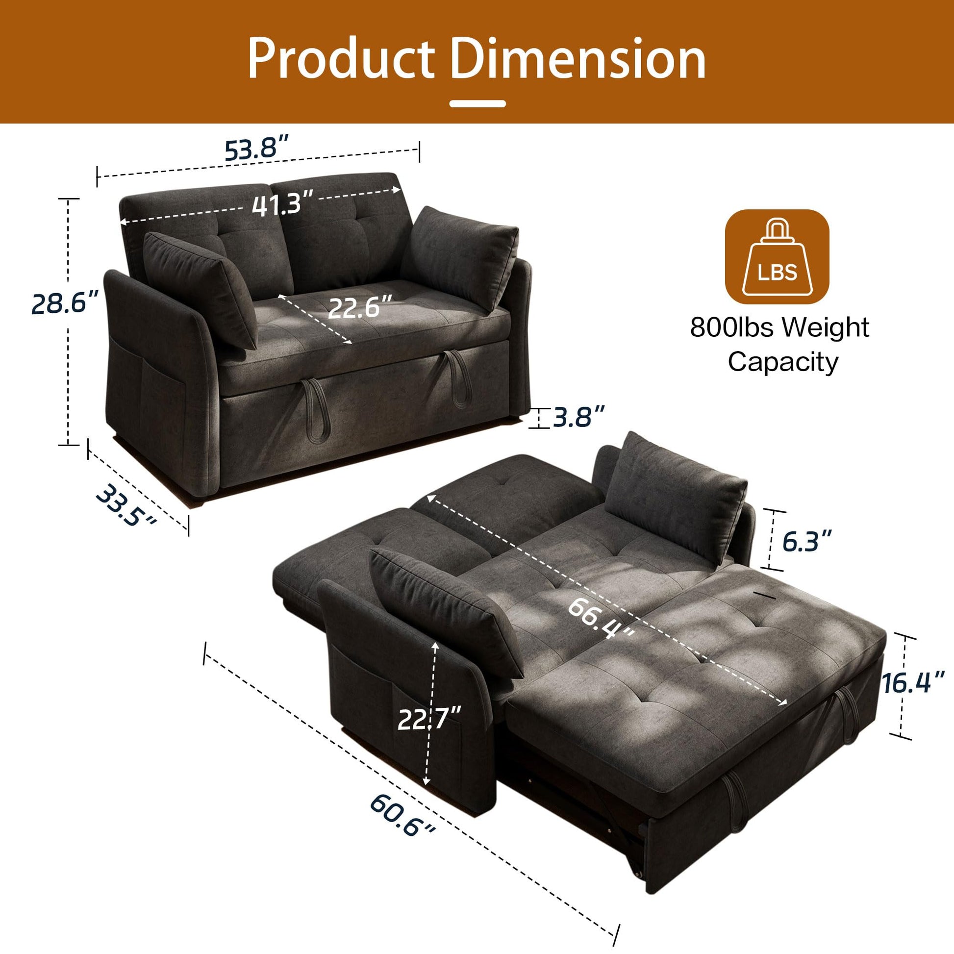 DEYGIA 3 in 1 Convertible Sleeper Sofa Bed, 53" Pull Out Couch with Adjustable Backrest,Storage Pockets and Toolless Assembly. Futon Couch for Living Room, Bedroom. (Black)