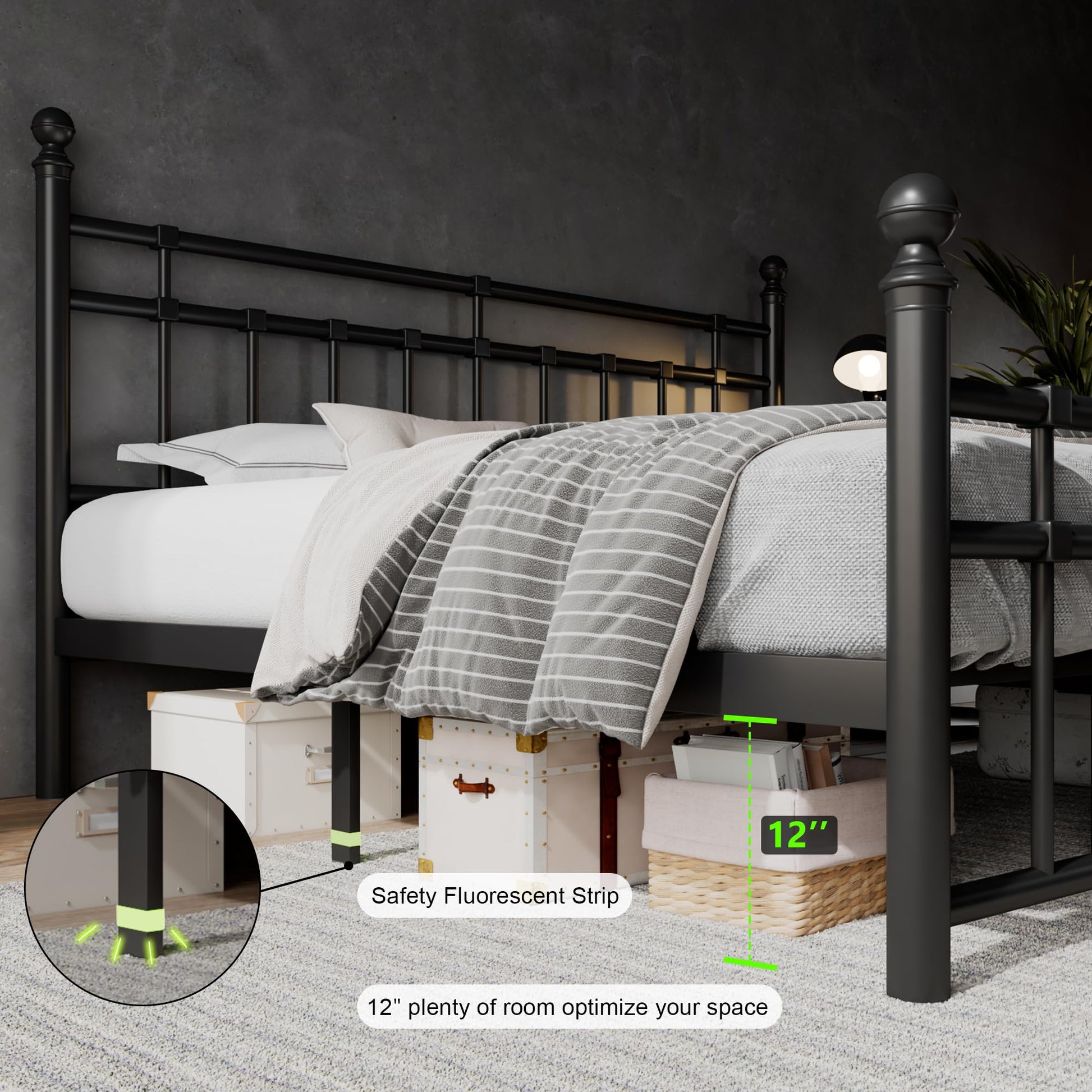 Feonase King Size Metal Platform Bed Frame with Victorian Classic Iron-Art Headboard & Footboard, Steel Slats Support, 12" Under Bed Storage, No Box Spring Needed, Easy Assembly, Noise-Free, Black