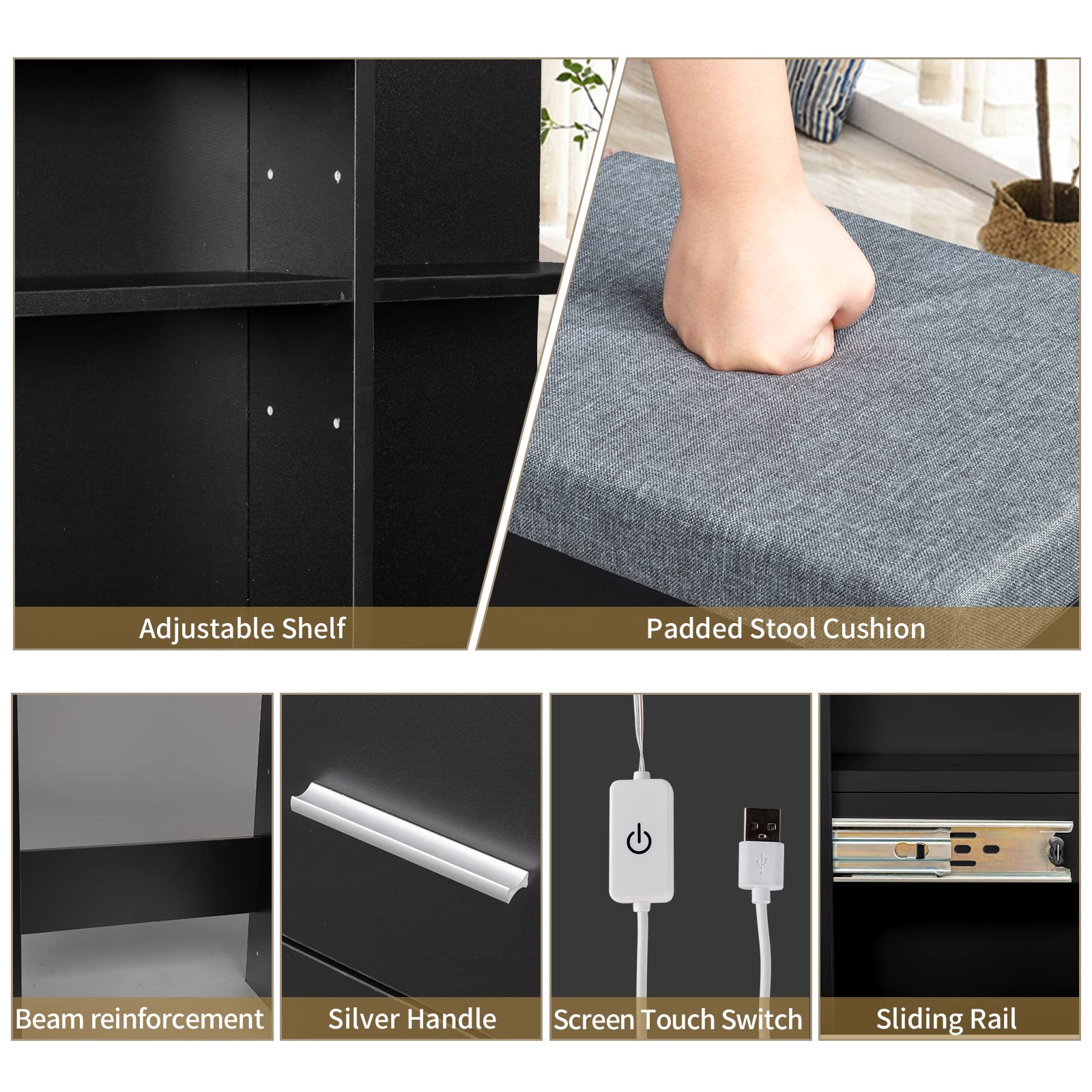 - MODERN & ELEGANT LOOK - This modern makeup vanity table is composed of a black and silver color, which is well blended with any home decoration style. Sleek linear design perfectly shows simplicity and modern fashion in your bedroom. An ideal gift for your girl on her birthday, Valentine's Day, Mother's Day, or Christmas.