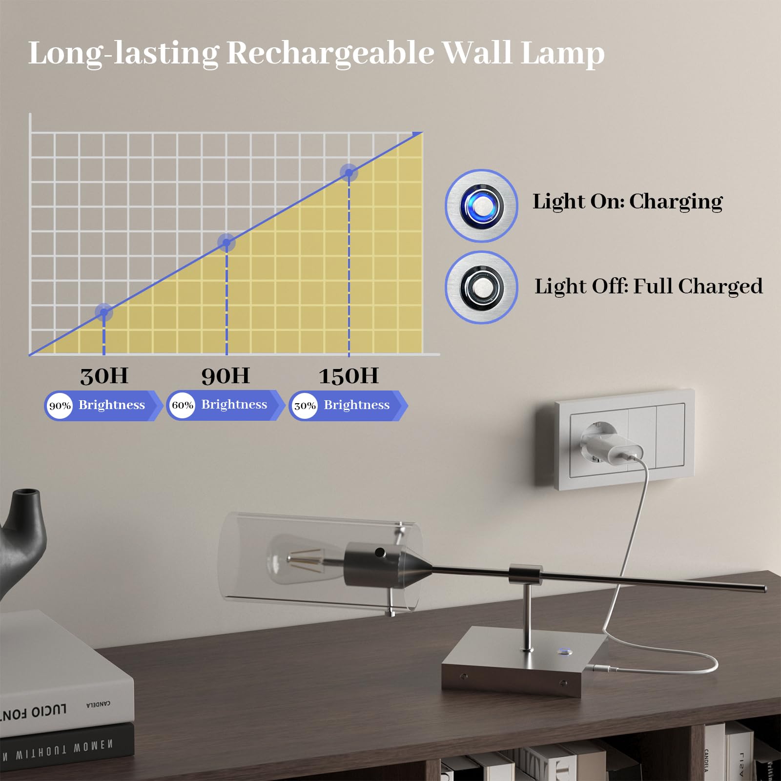 - 【Strong Battery Life & Easy Charging】The rechargeable battery wall sconce can be used for 28h(bright) to 150h(lowest brightness), no need to charge frequently. 1 second to remove the battery powered lamp and charge it with a Type-C USB cable(included). After charging, 1 second to hang it back without other tedious steps.
