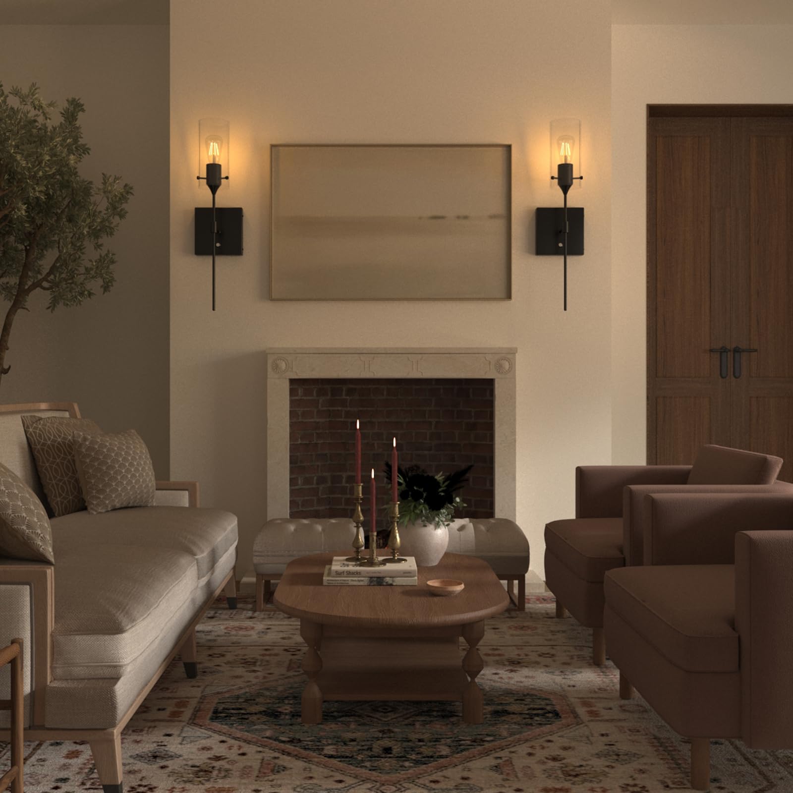 ThyFenno Dimmable Battery Operated Wall Sconce Set of 2, Rechargeable Wall Mount Light No Wiring, Easy Install Wireless Wall Lamp for Living Room Bedroom Hallway Farmhouse Indoor, Bulb Included