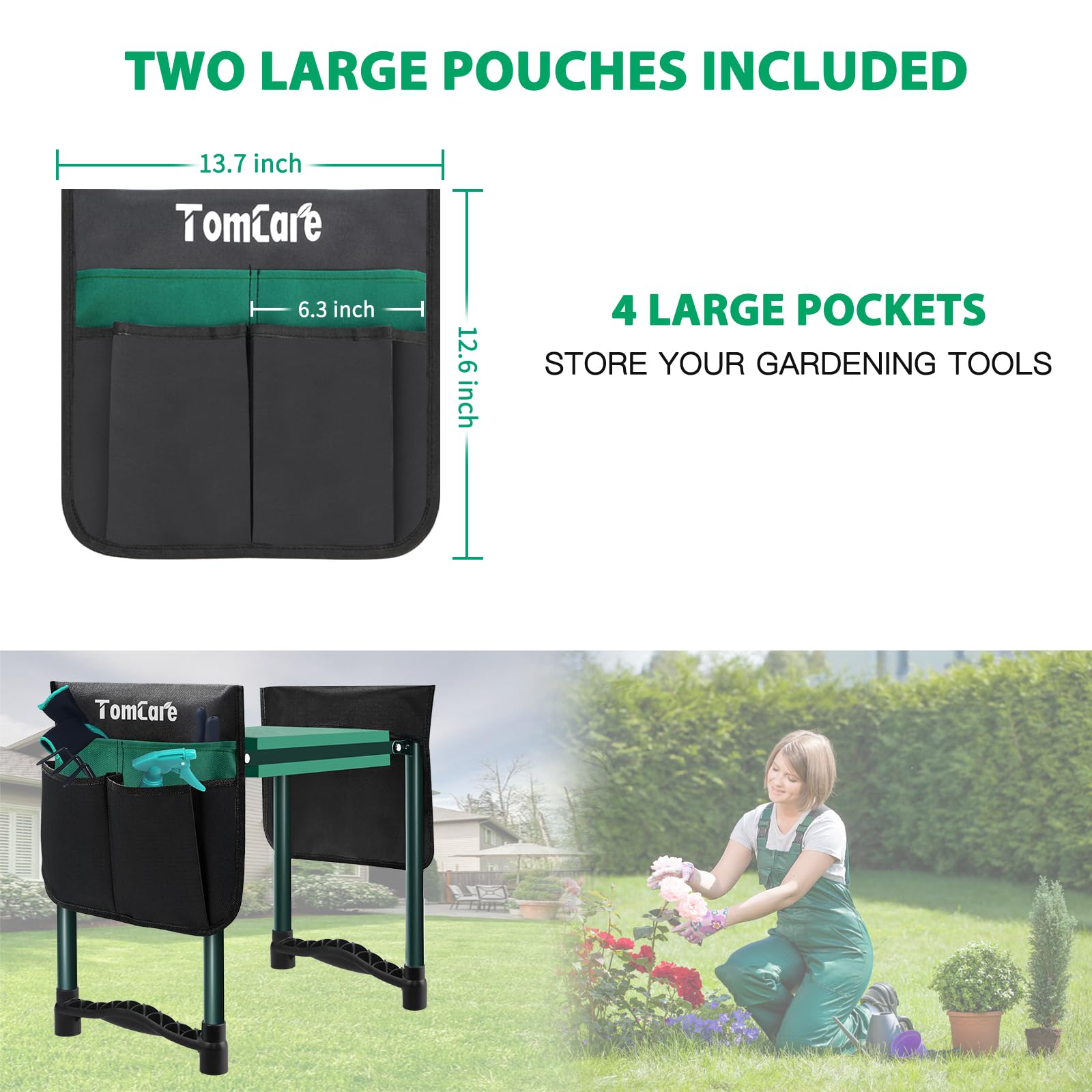 TomCare Garden Kneeler and Seat 10.64” Wider Larger Soft Kneeling Pad Garden Bench with 2 Large Tool Pouches Heavy Duty Garden Stool Foldable Tools Gardening Gifts for Women Men Gardeners