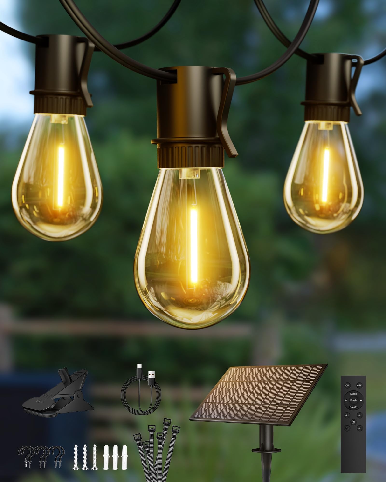 - Energy-efficient Solar String Lights: TORKASE 100FT solar string lights feature a high-efficiency, light-sensitive solar panel that charges quickly under direct sunlight, providing up to 8 hours of illumination once fully charged. 2200K warm white light creates a cozy atmosphere for any outdoor space. Solar string lights also support USB charging, ensuring reliable use even on cloudy days or in low light conditions