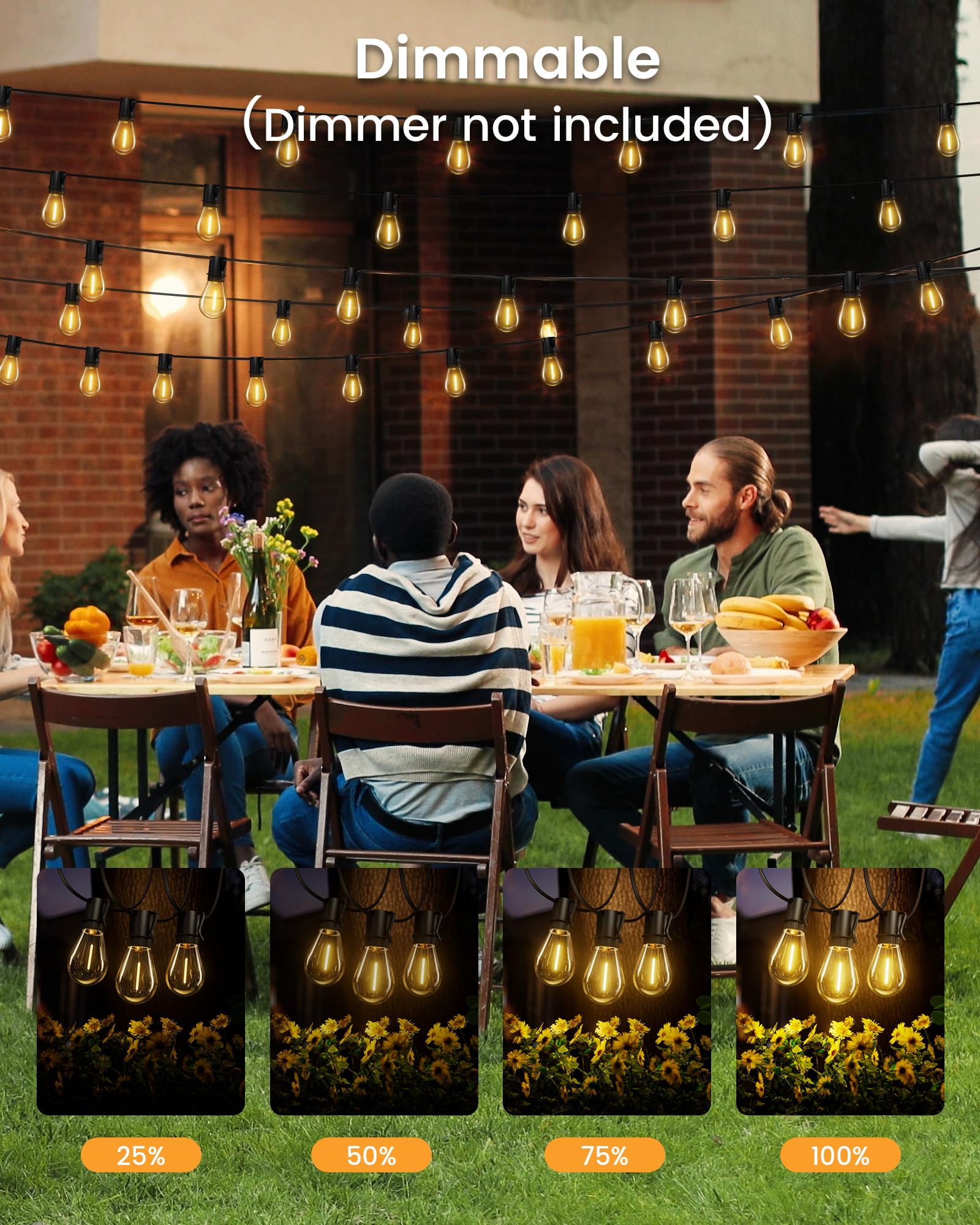 Torkase 100FT LED Outdoor String Lights with 25+2 S14 Shatterproof Bulbs, Commercial Grade Waterproof Patio Lights for Cafe Backyard Deck