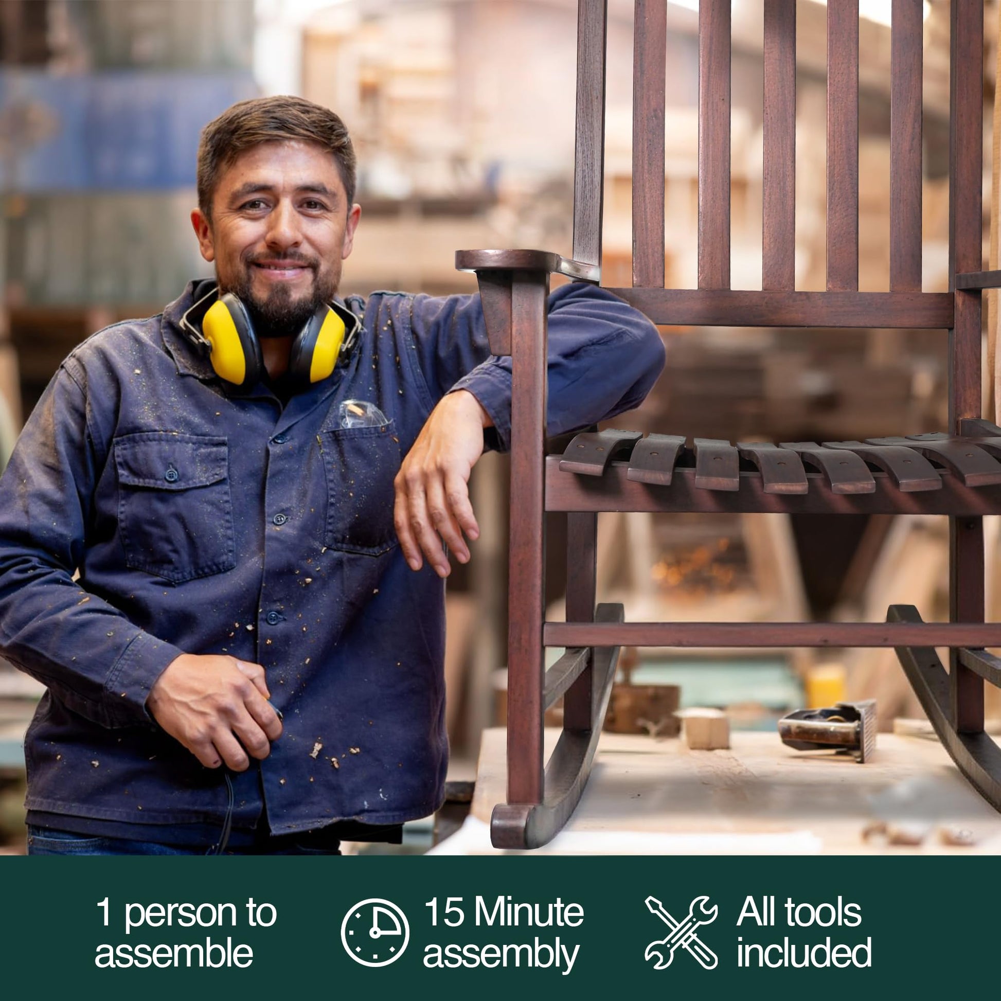 - Easy Assembly and Low-Maintenance Finish – This Acacia wood rocking chair comes with pre-drilled holes, clear instructions, and all necessary hardware for a hassle-free setup. Its naturally weather-resistant finish requires minimal upkeep, ensuring long-lasting beauty with simple occasional cleaning