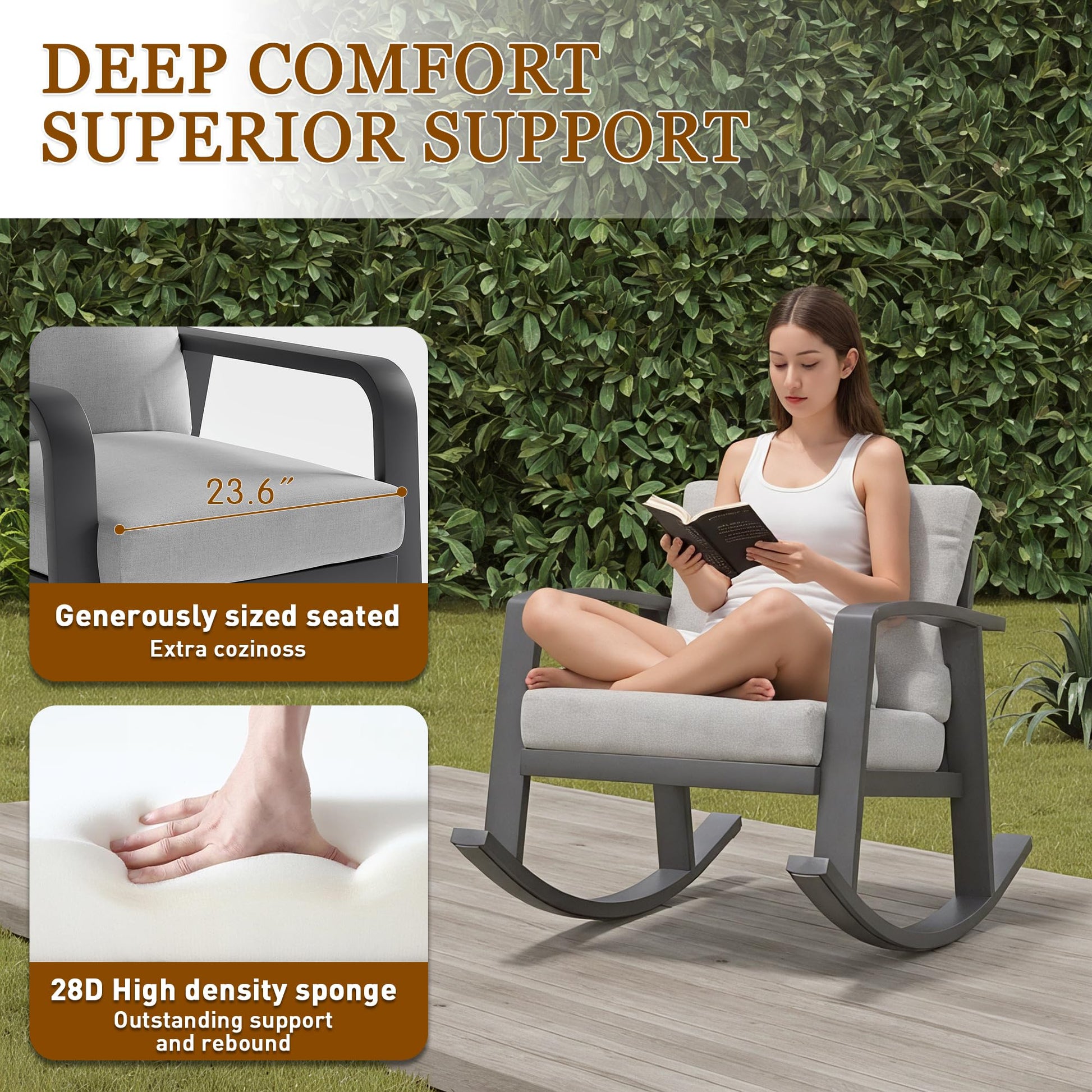 - Ergonomic Rocking Design: The patio conversation set features a rocking chair with nonslip pads and anti - tip pads, ensuring stability and allowing you to fully stretch out and relax. The patio chair's backrest, angled over 90°, provides exceptional back and waist support, enhancing your comfort.