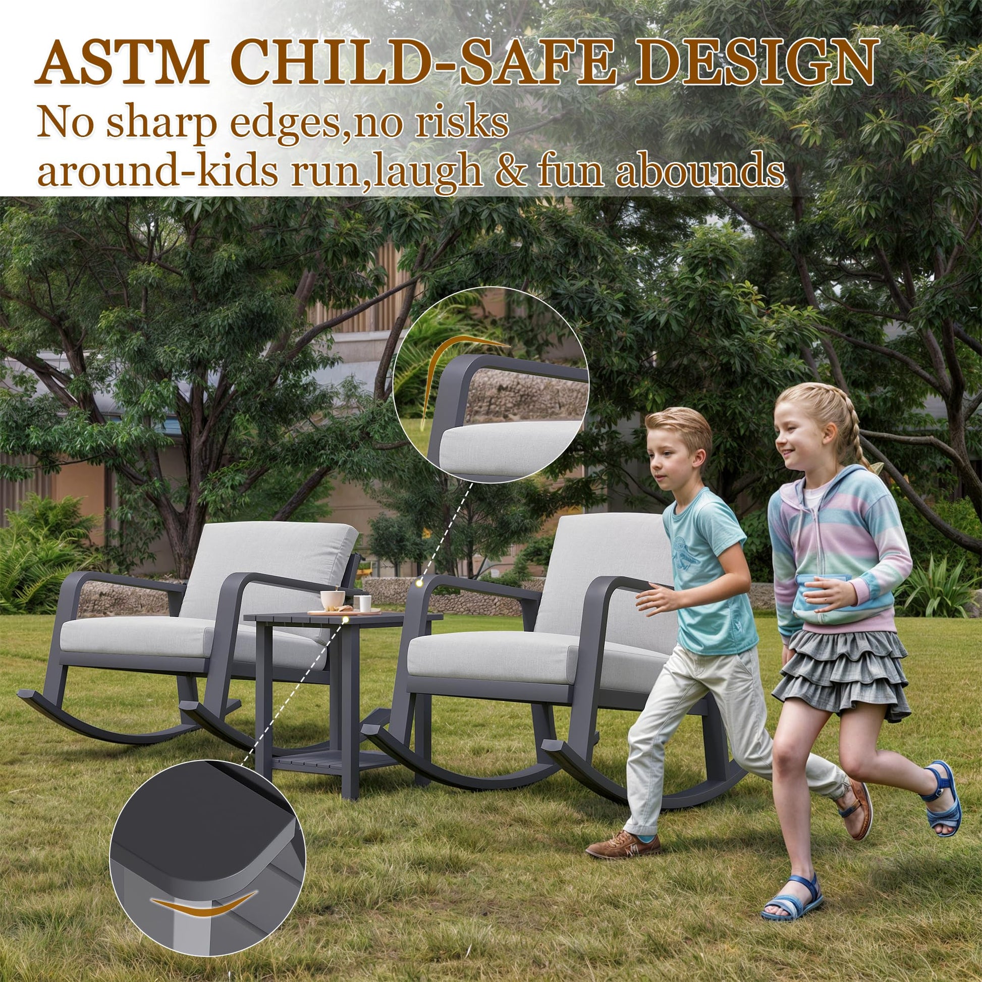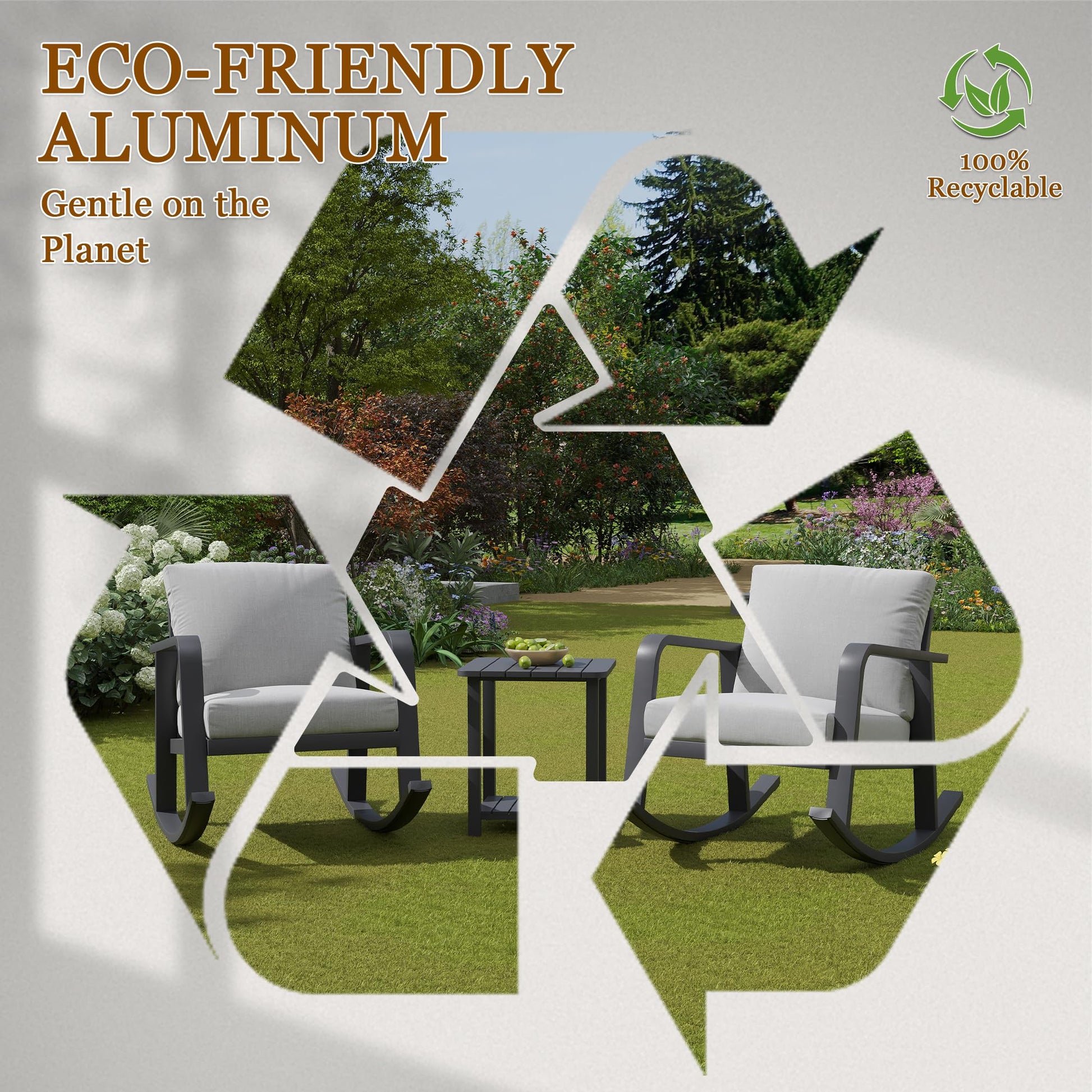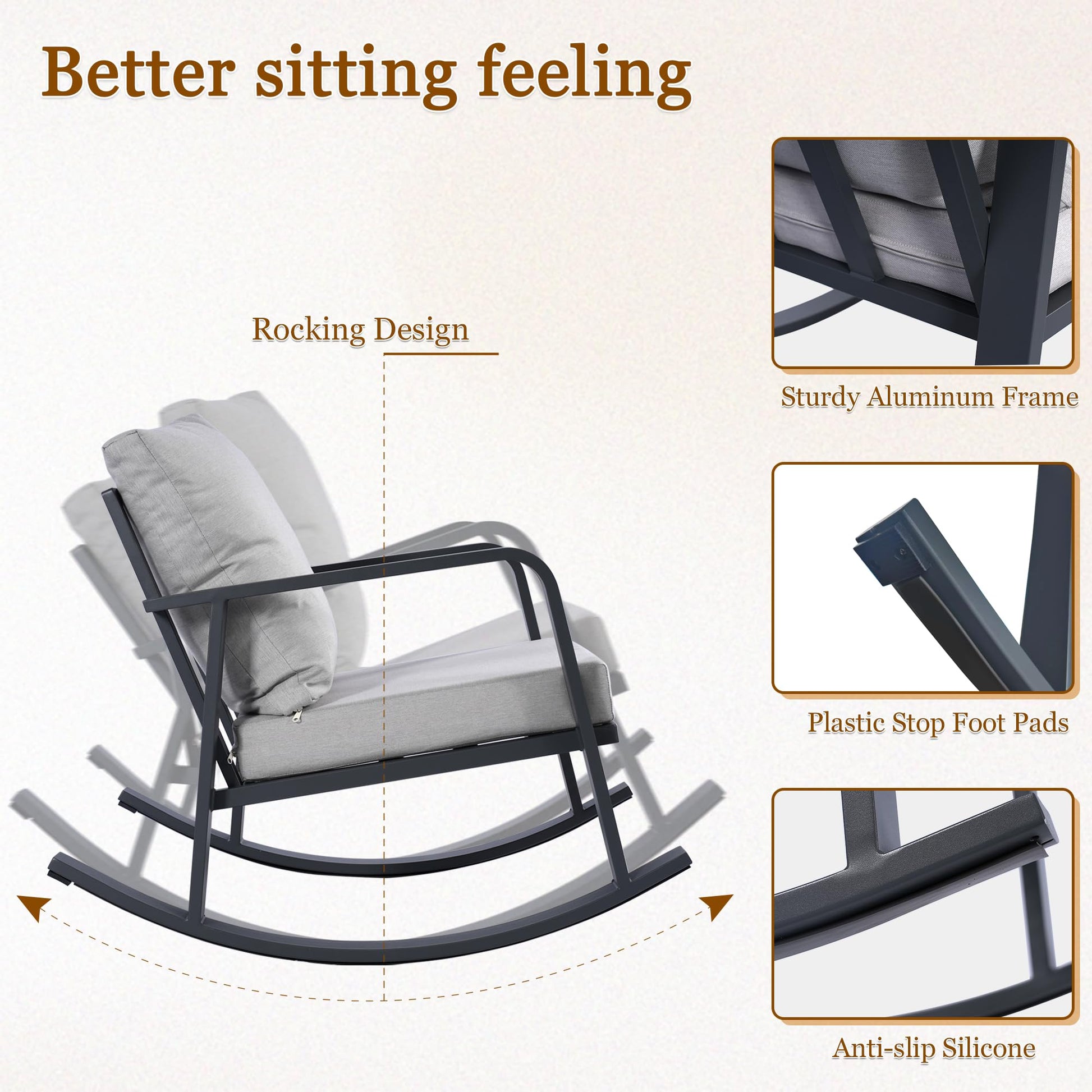 Trenlogne 3 Piece Outdoor Rocking Chairs, Patio Bistro Set with 2 Rockers and 1 Metal Coffee Table, Oversize Aluminum Conversation Set for Garden, Balcony, Backyard