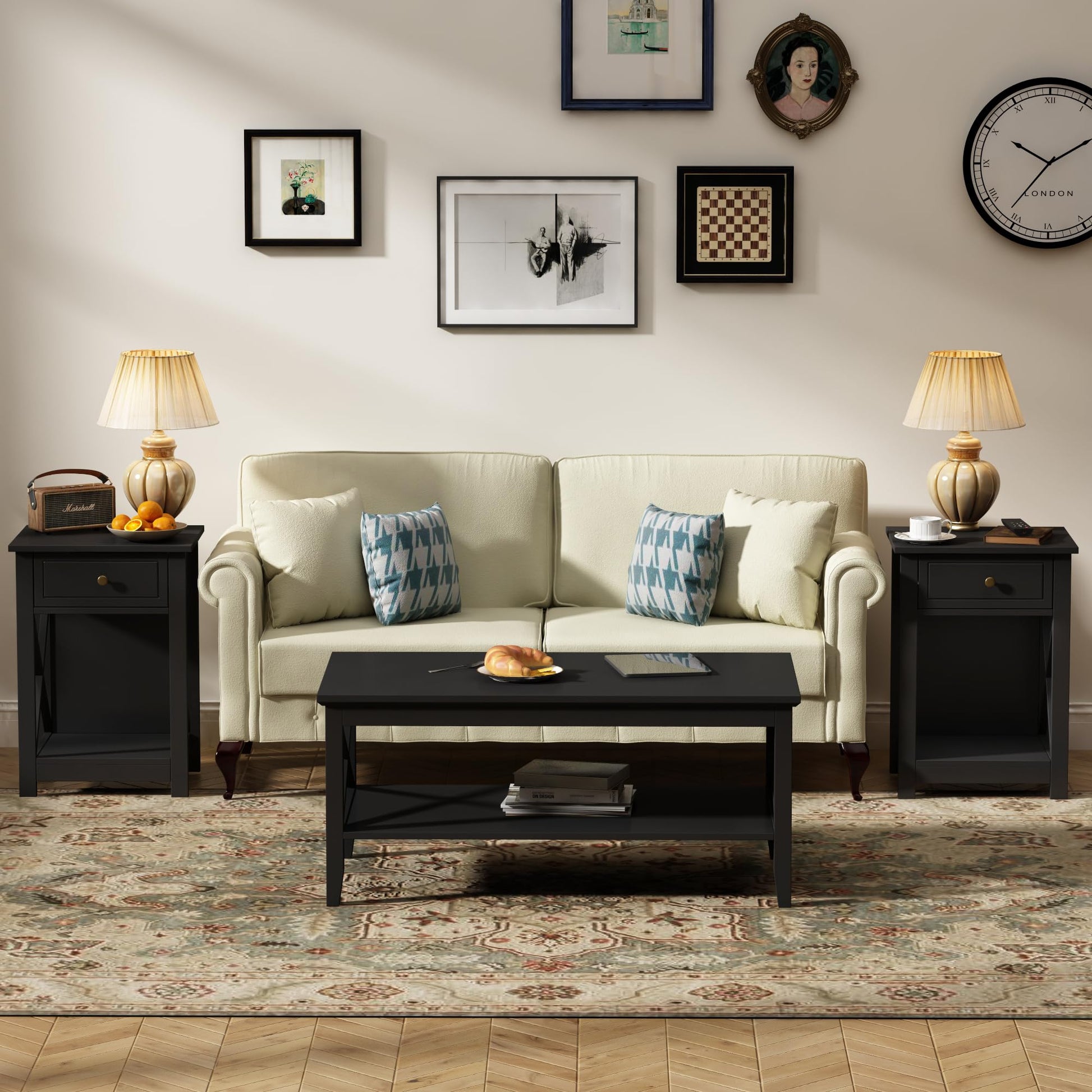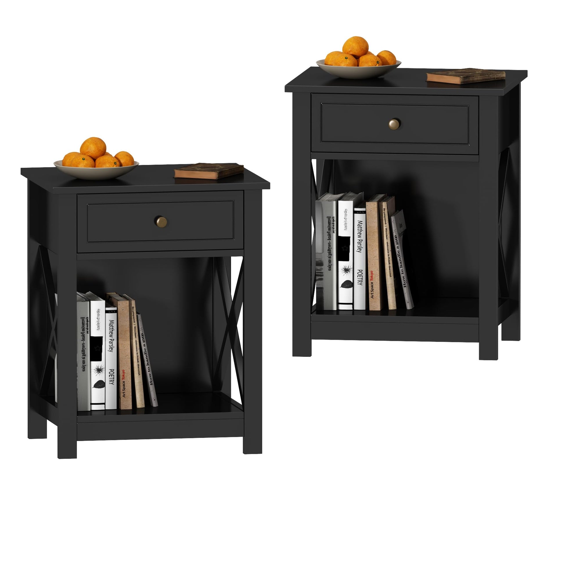 Treocho Black End Table Set of 2, Modern X-Design Night Stand,Bedside End Table with Open Storage for Small Place,Bedroom