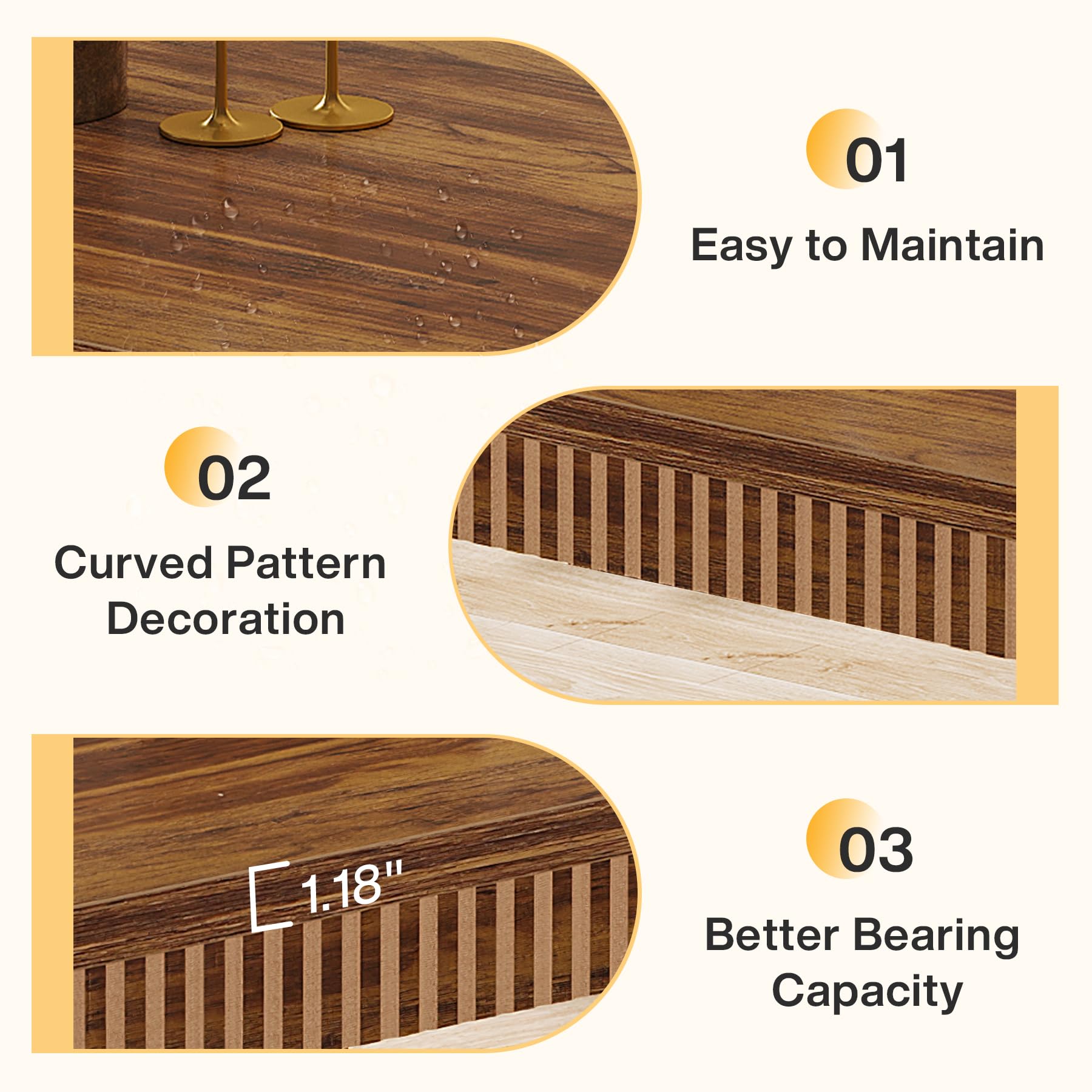 - Farmhouse-Inspired Design: Infused with farmhouse charm, this dining set features clean lines and a delicate wood grain finish for a cozy, comfortable feel. The vertical stripe detailing on both the table and benches adds a unique touch, enhancing the overall aesthetic appeal, which blends seamlessly into any home decor