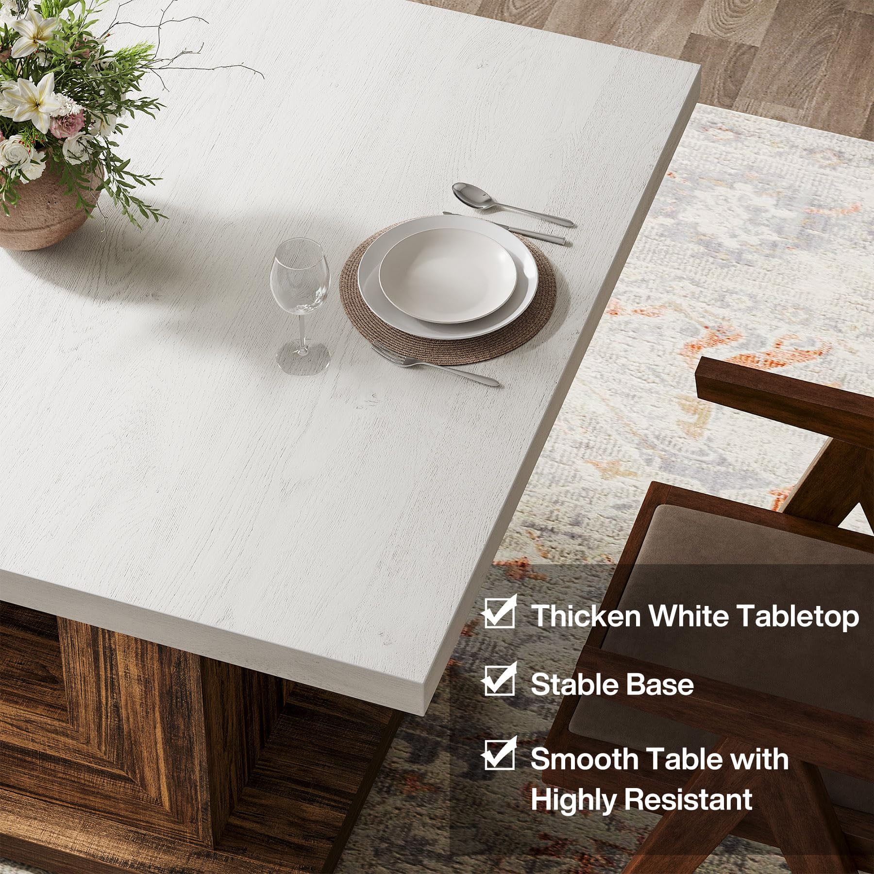 Tribesigns 47-Inch Farmhouse Dining Table for 4, White Kitchen Dinner Table with Heavy Duty Pedestal, Rustic Wooden Eating Table for Home, Dining Room, Small Space, White & Brown