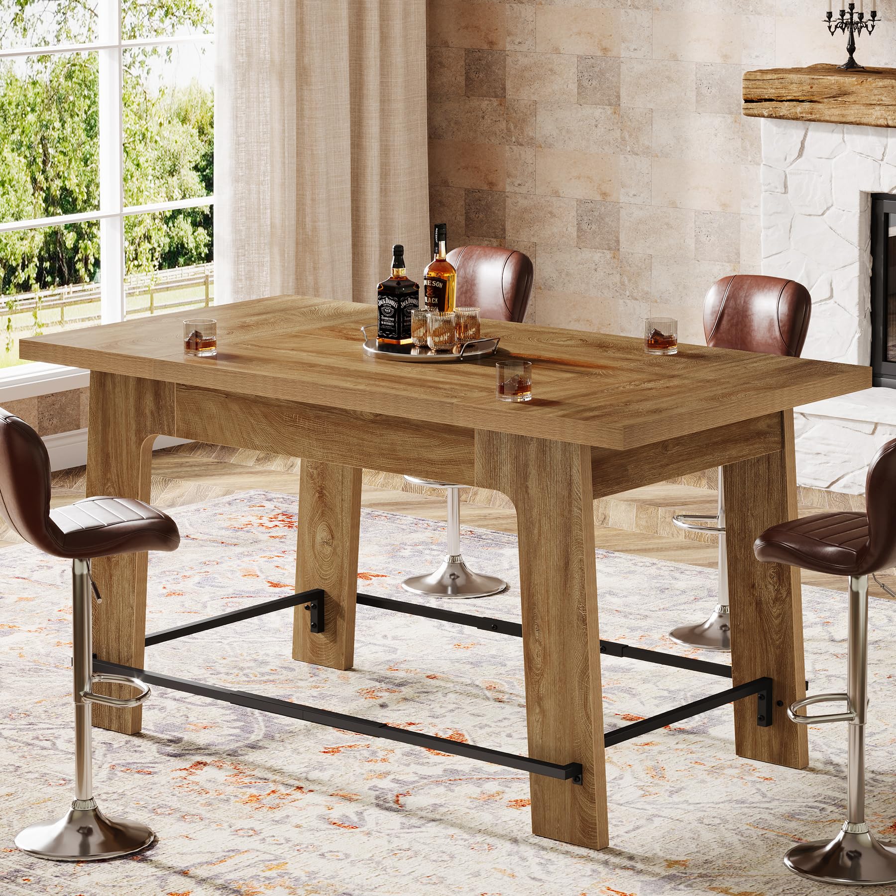 Tribesigns 62.6-Inch Bar Table, Counter Height Pub Dining Table with Metal Footrest, Rectangular Home Bar Unit for Home Kitchen, Bistro, Basement, Living Room