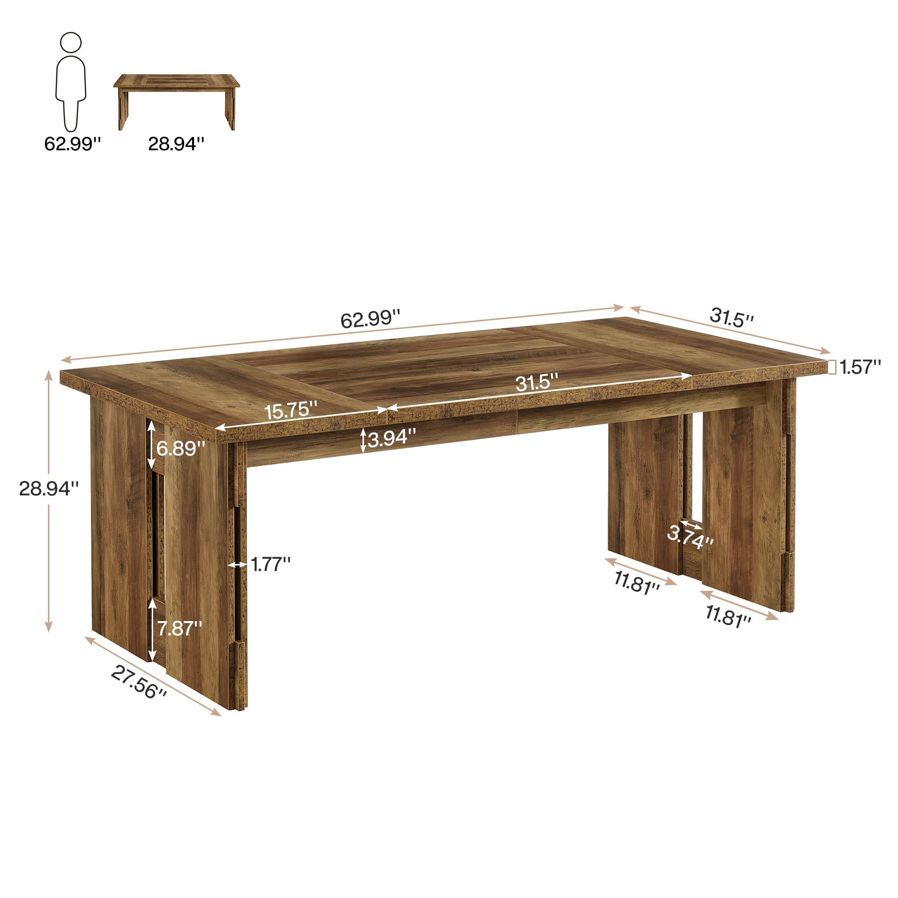 Tribesigns 63-Inch Farmhouse Dining Table for 4-6, Rectangular Kitchen Dinner Table with Large Tabletop for Dining Room, Living Room, Kitchen, Rustic Brown