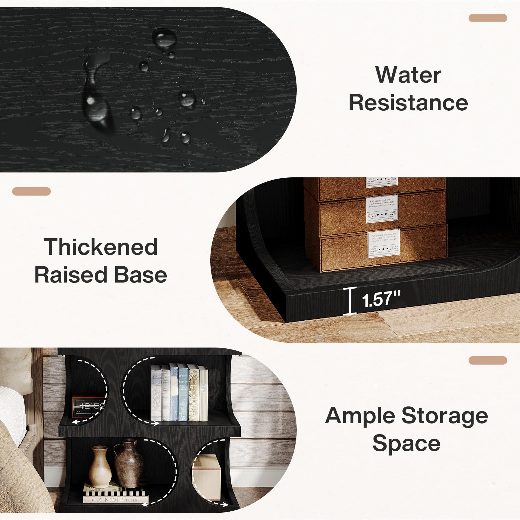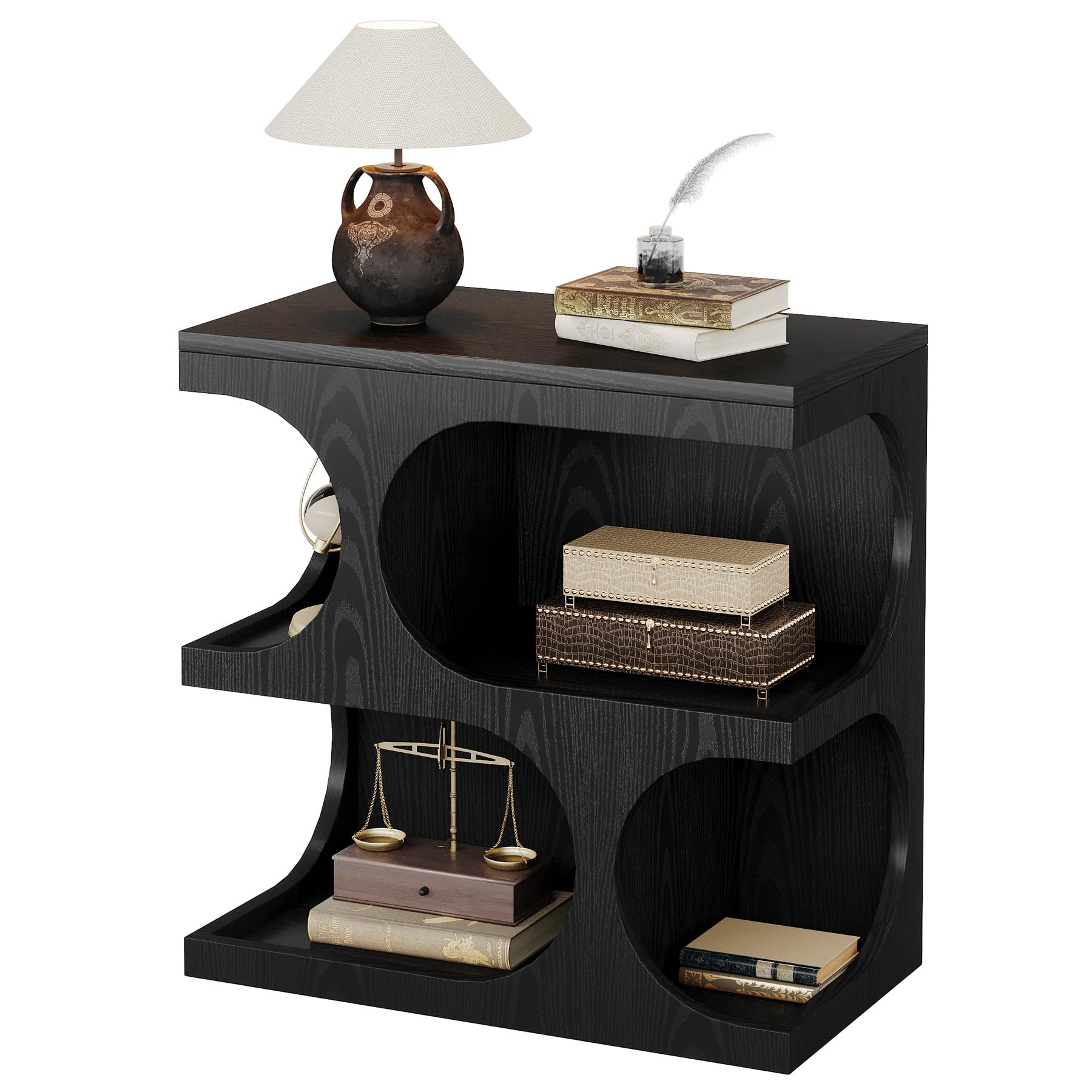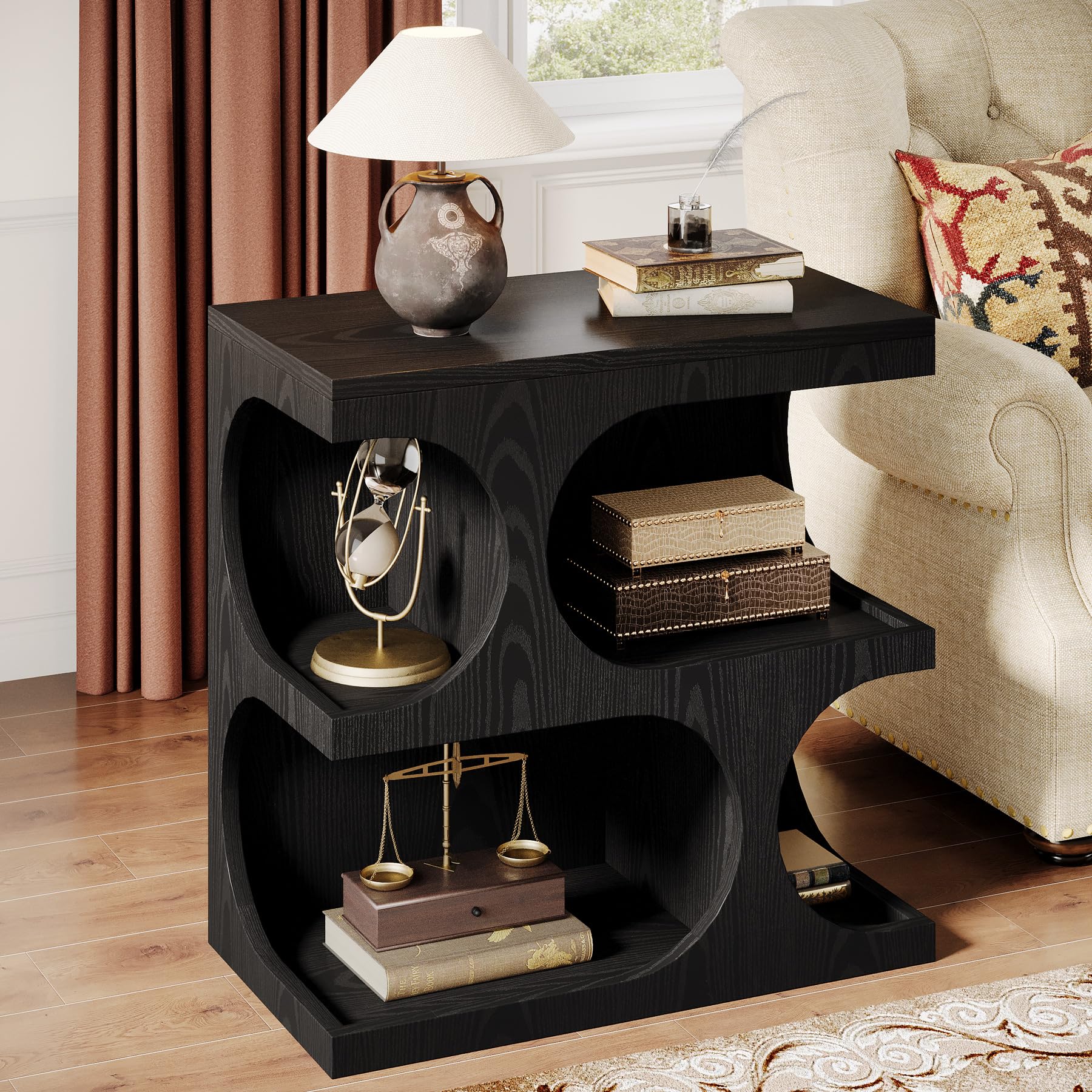 Tribesigns Black End Table for Living Room, Modern S-Shape Side Tables with 2-Tier Storage Shelf, Retro Bedside Nightstands for Bedroom, Easy Assembly