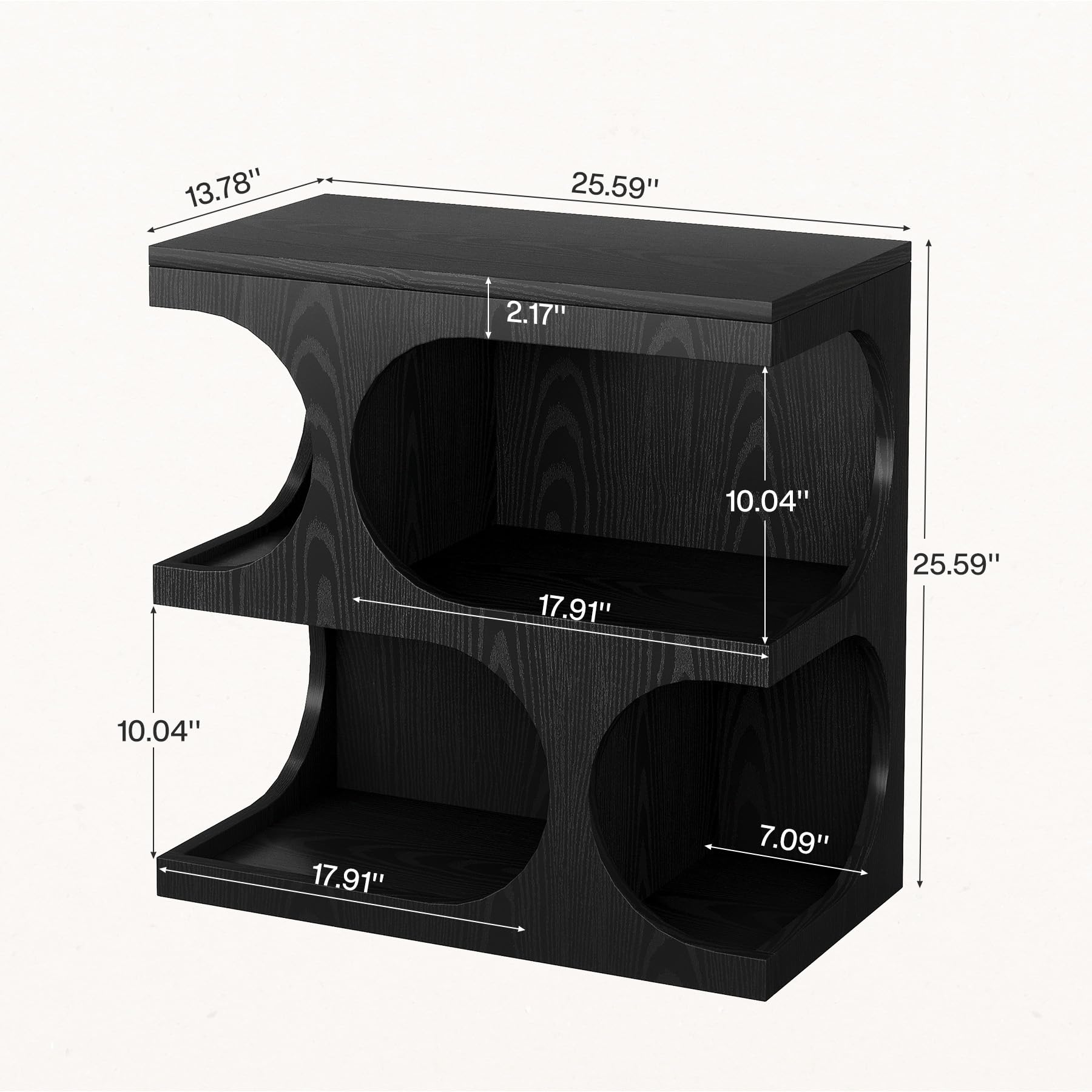- 2-Tier Open Storage: Measuring 25.59' W x 13.78' D x 25.59' H, this black end table features two-tier storage with varied dimensions to organize items of different sizes, maintaining tidiness and enhancing your living comfort