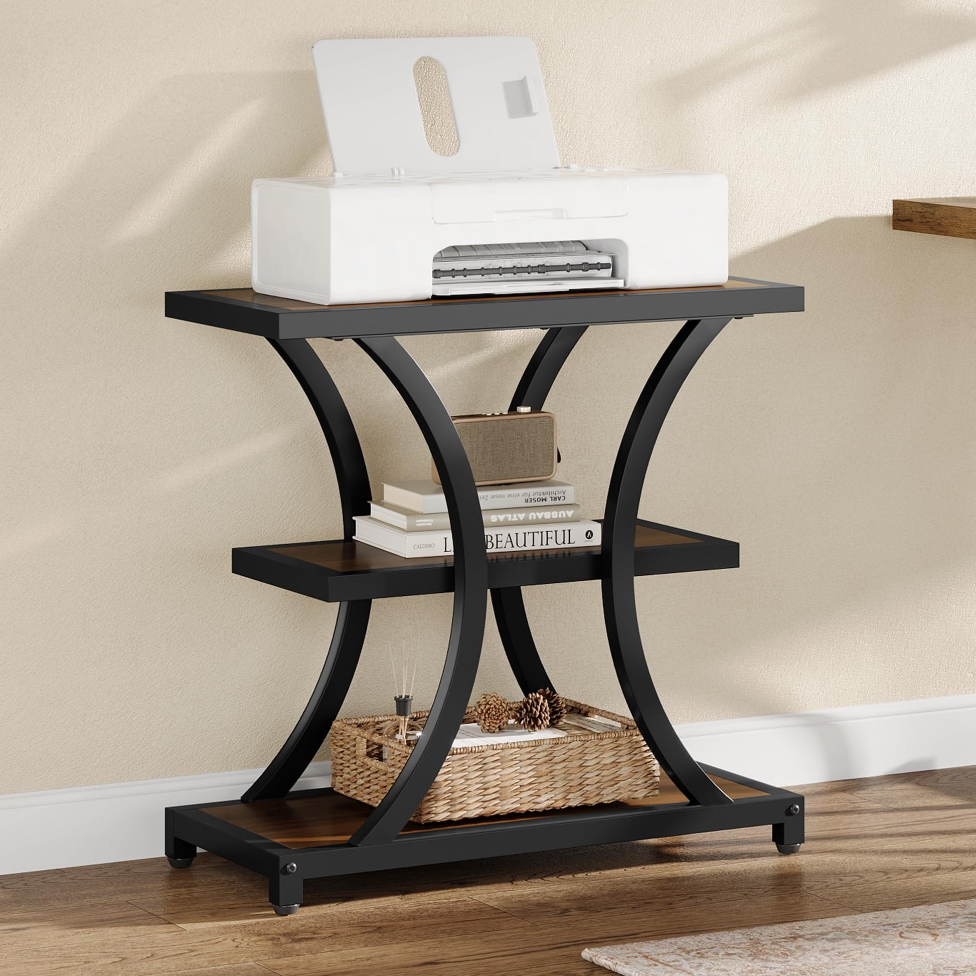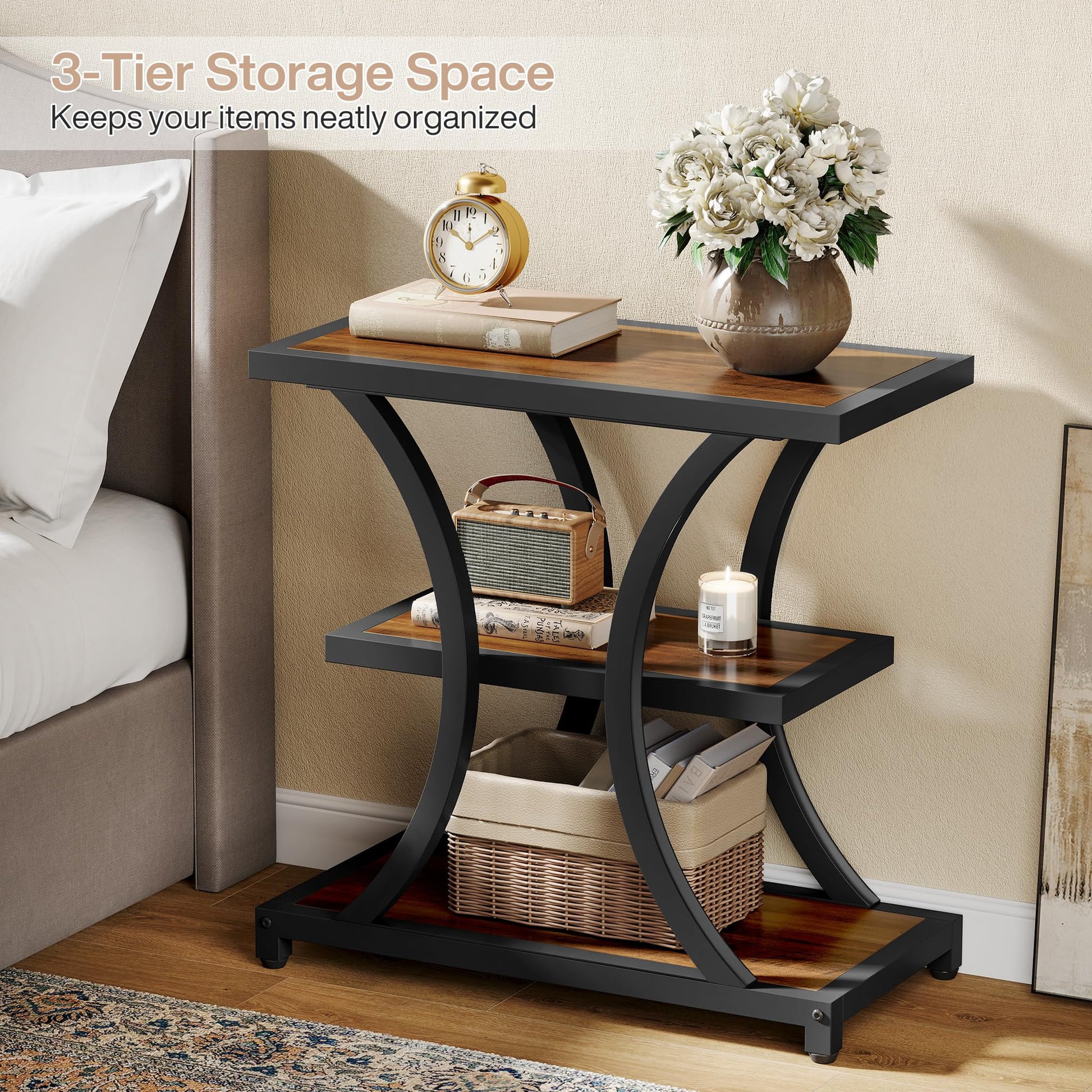 Tribesigns End Table with Storage, 3-Tier Side Table with Geometric Metal Design, Industrial Nightstand for Small Spaces, Living Room, Bedroom, Study Room (Rustic Brown)