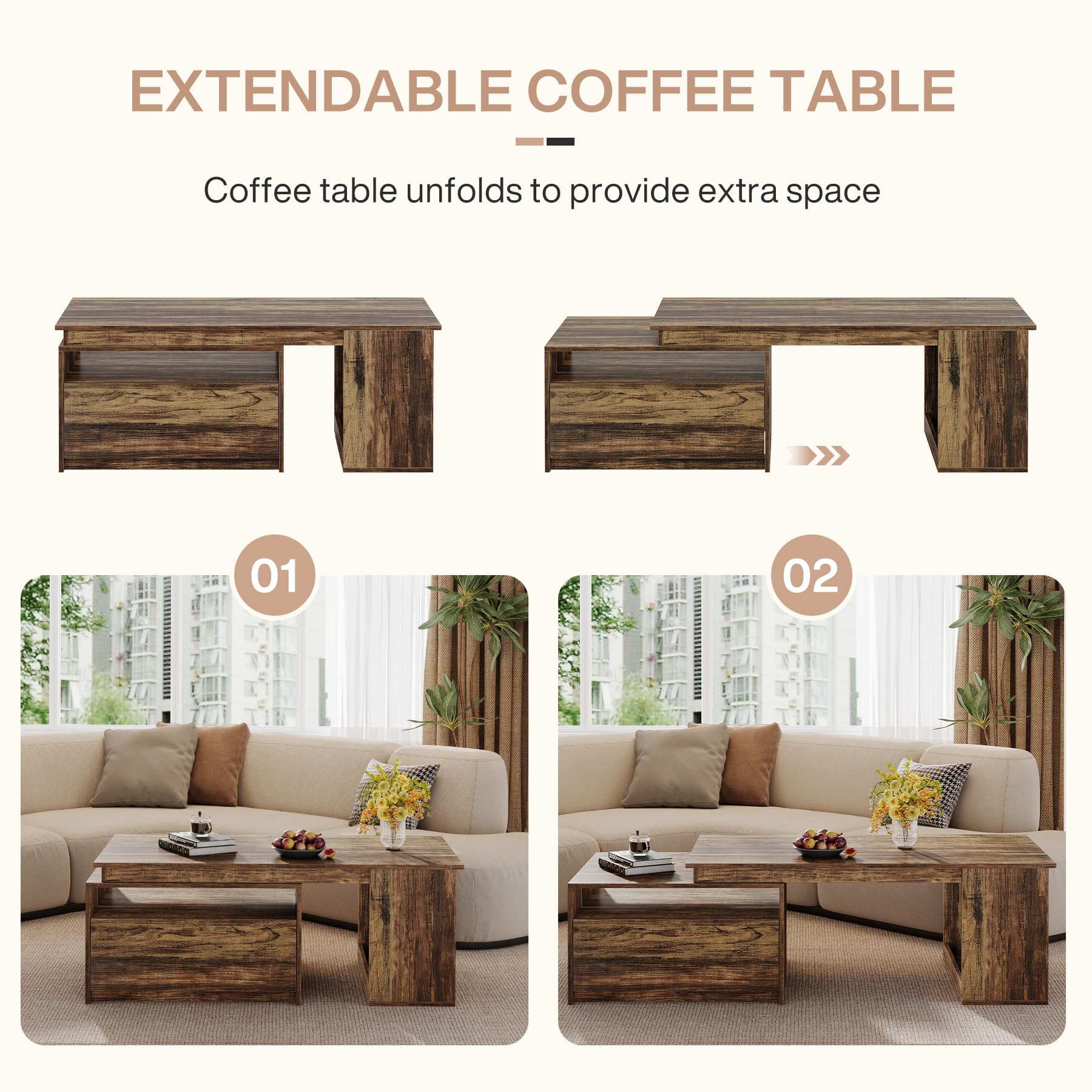 - Extendable Coffee Table: With its expandable design, this wooden coffee table adapts to your space, effortlessly adjusting to fit any area, as a living room centerpiece. It can extend from 47.24 inches to a maximum length of 70.86 inches