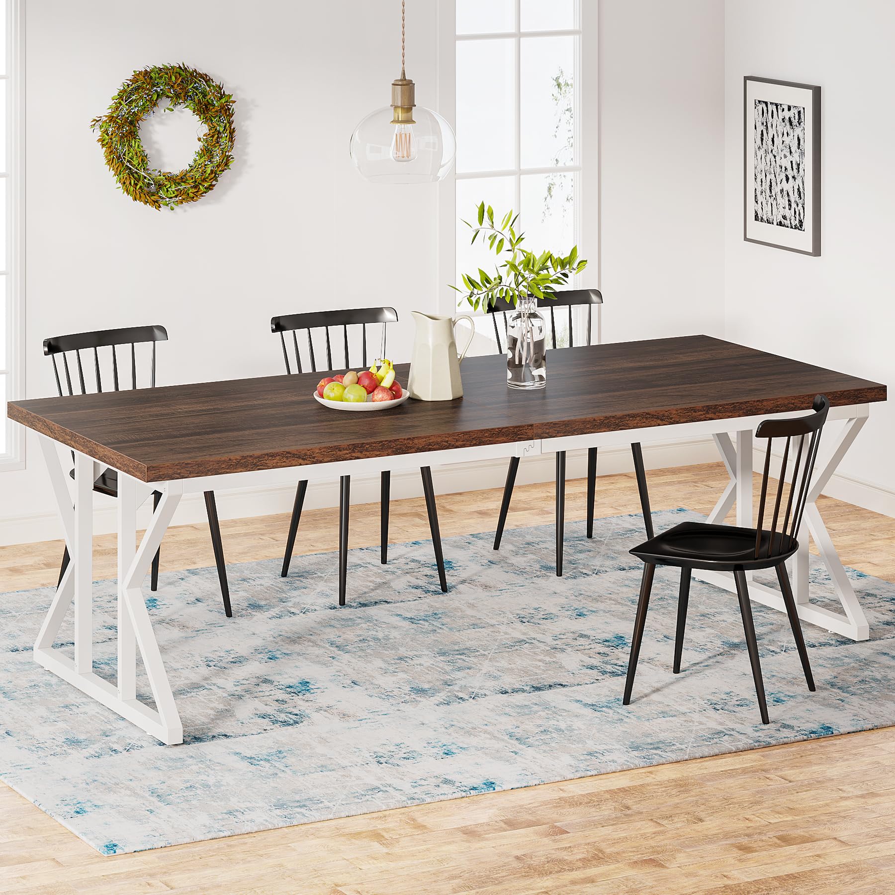 Tribesigns Farmhouse Dining Table for 6-8 People, 78.7-Inch Rectangular Wood Dining Table, Rustic Kitchen Table with Heavy Duty Metal Legs for Dining Room