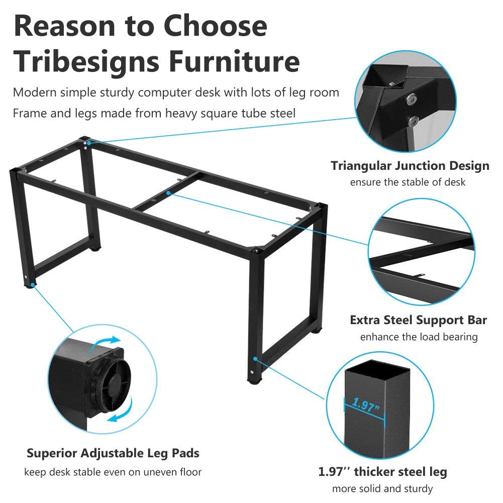 Tribesigns Modern Computer Desk, 63 inch Large Office Desk Computer Table Study Writing Desk Workstation for Home Office, Black Metal Frame