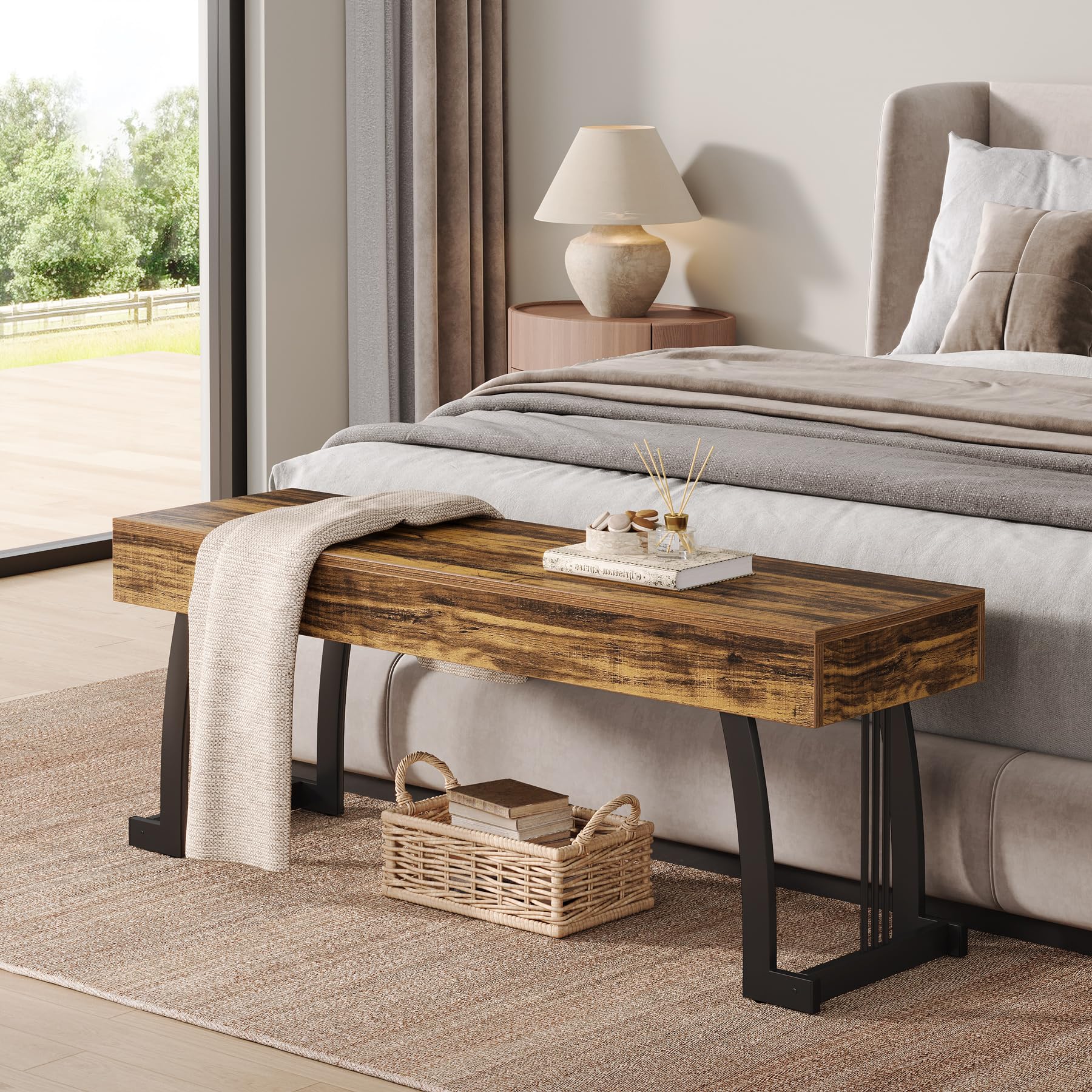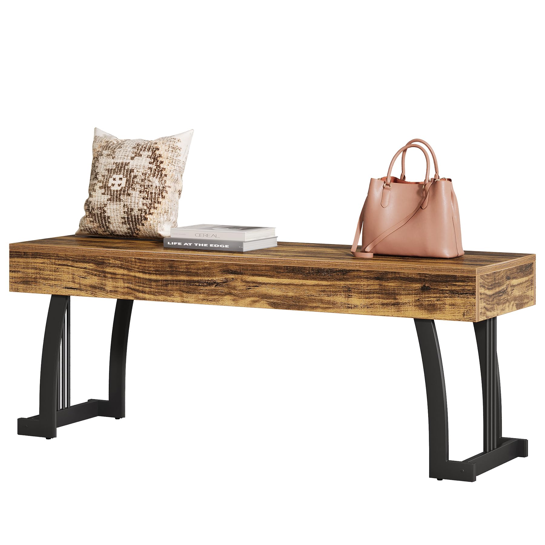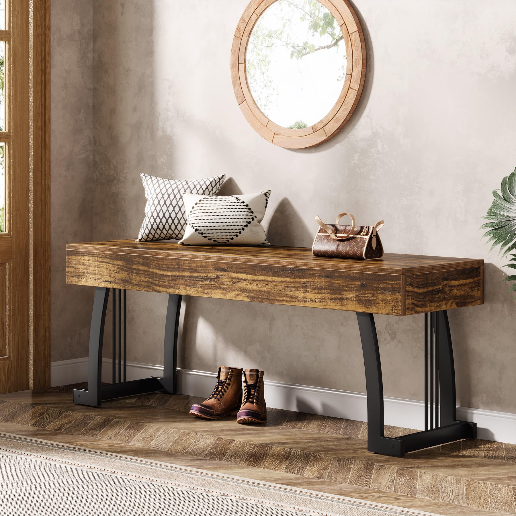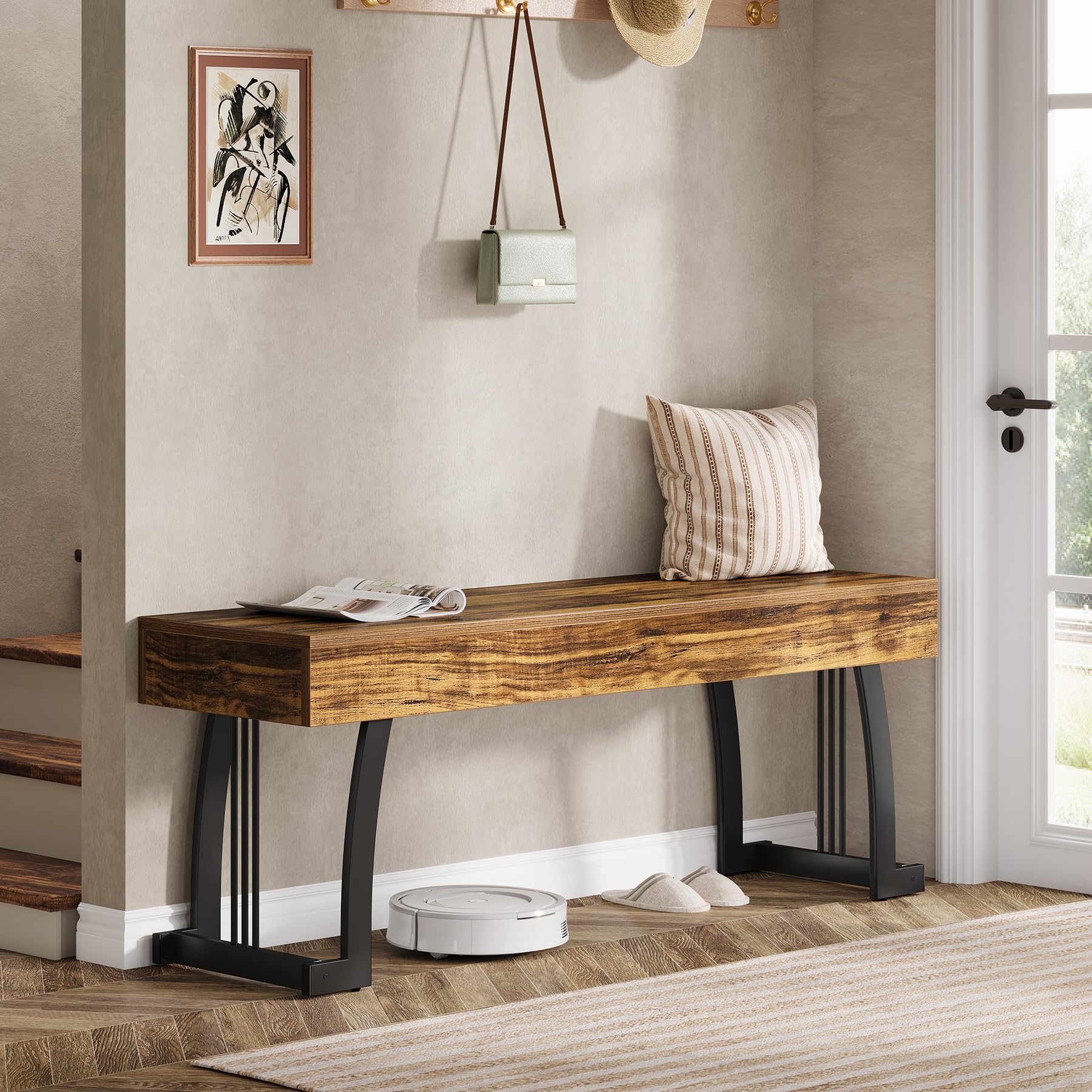 Tribesigns Wooden Entryway Bench, 47.24" Rustic Indoor End of Bed Bench with Sturdy Metal Legs, Long Dining Seat for Dining Room, Bedroom, Entry, Mudroom