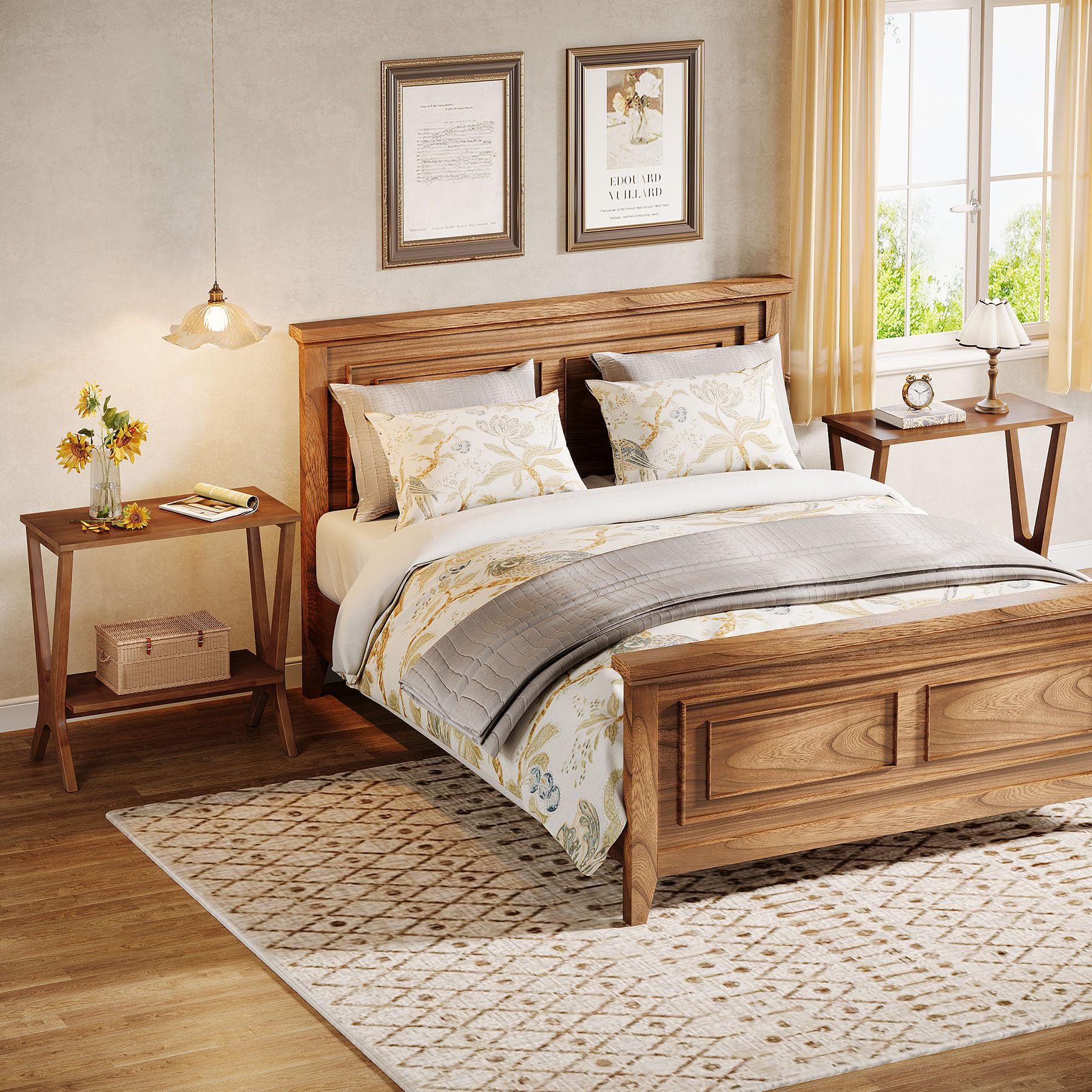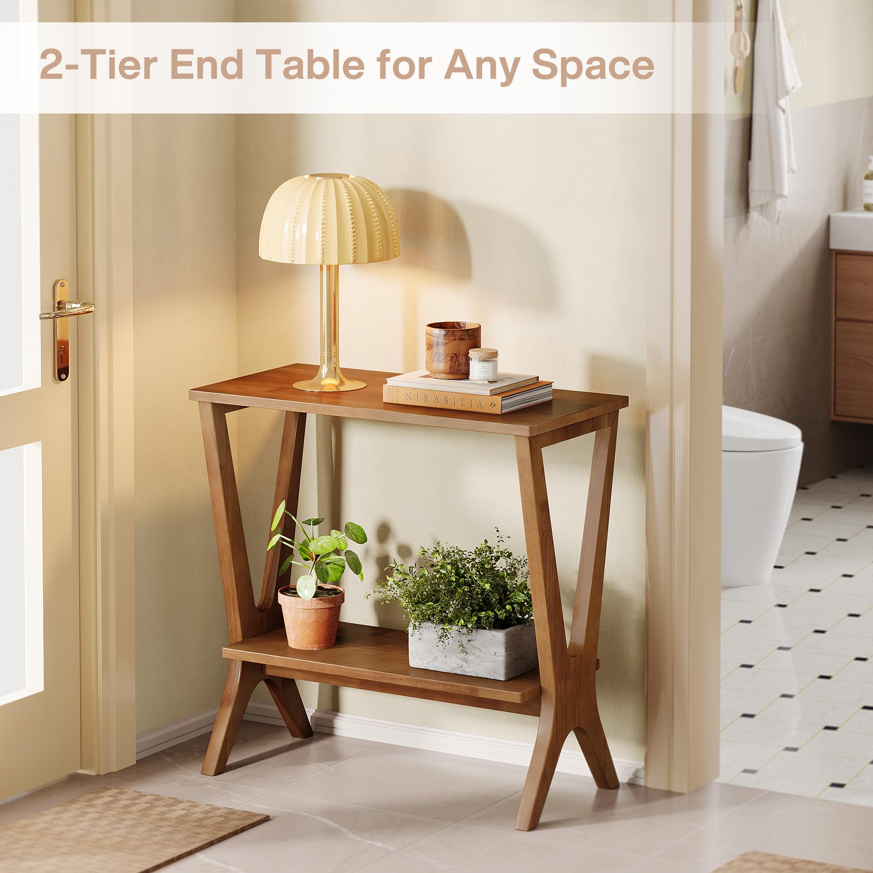 TRIBEWOOD Solid Wood End Table Set of 2, 2-Tier Storage Shelves Sofa Couch Side Table with Sturdy Legs, Wooden Narrow Retro Nightstand for Small Spaces, Bedroom, Living Room, Apartment, Vintage Brown