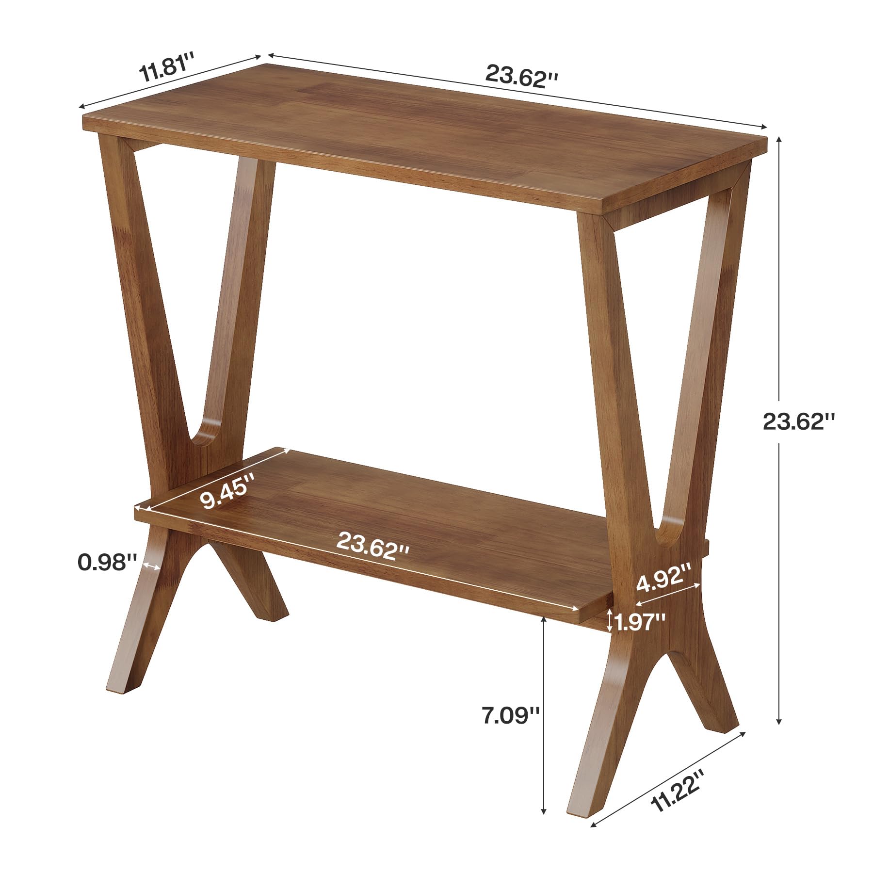 - Space-Saving: Measuring 11.81' D x 23.62' W x 23.62' H, the slim sofa side table optimizes space without compromising functionality. It keeps essentials like remote, book, drink, or decorative items organized and within easy reach from your couch or bed