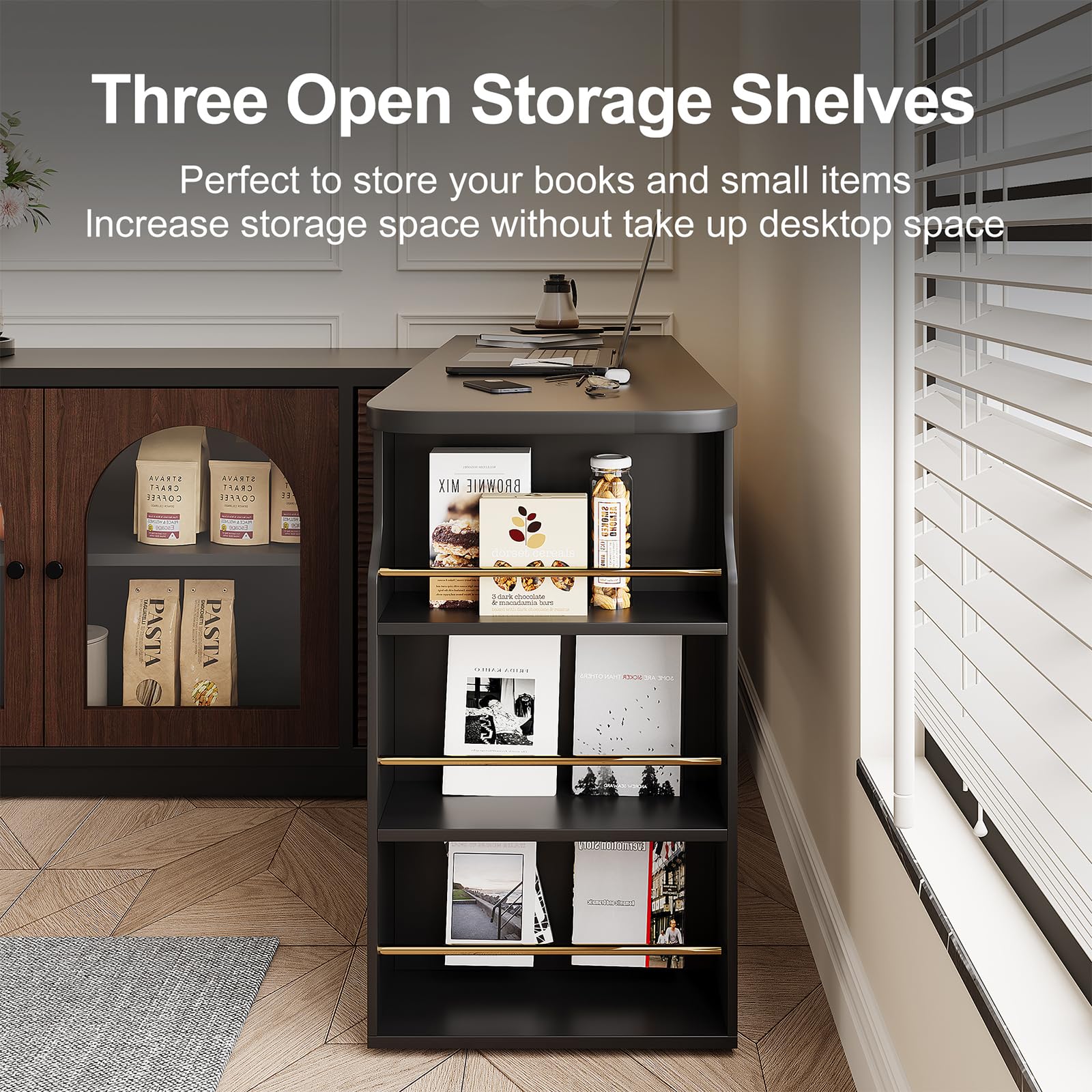 - Modern Aesthetic - Dark brown wood grain table top + simple black frame to match any style, open glass door adds an elegant touch to any room with ease