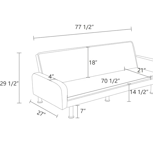 Details: Trygoal Convertible Folding Futon Sofa, 77.5' Breathable Leather Sofa Bed with Adjustable Backrest, 2 Seater Loveseat with Curved Armrest for Living Room Bedroom Small Spaces, Grey