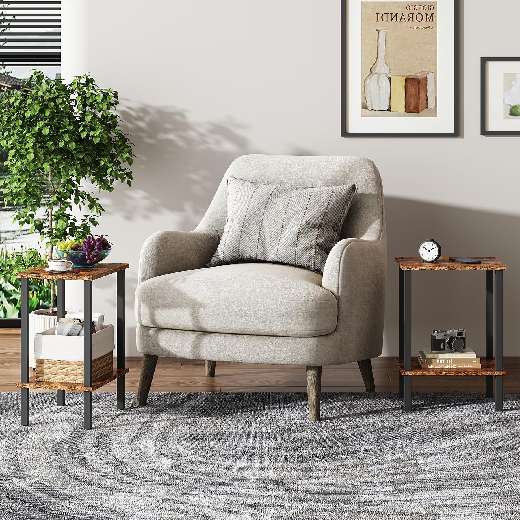 TUTOTAK End Table, Set of 2, Side Table, Nightstand, 2-Tier Storage Shelf, Sofa Table for Small Space, Living Room, Bed Room TB01BB035