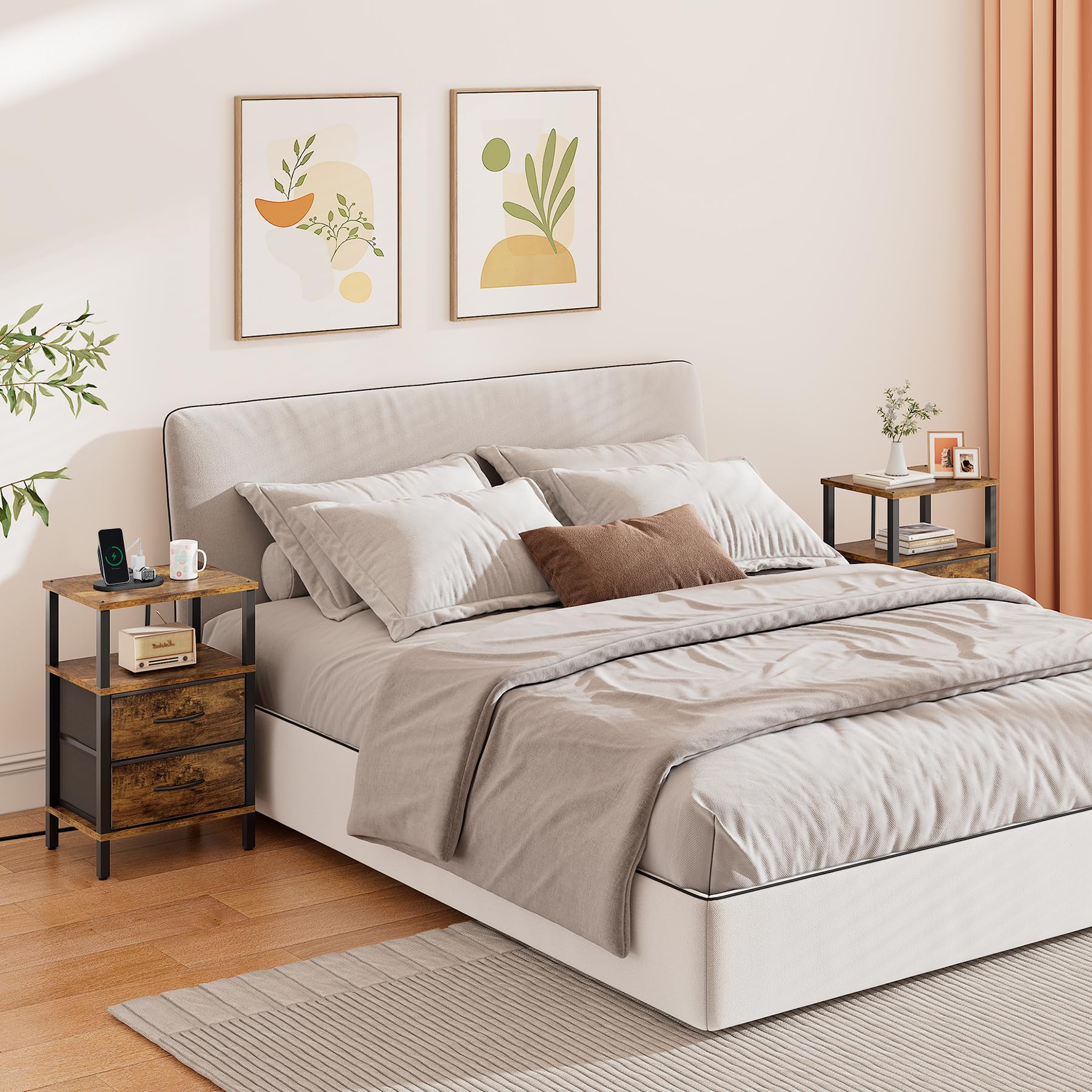 TUTOTAK End Table with Charging Station, Side Table with 2 USB Ports and Outlets, Nightstand with Cloth Drawer, Set of 2, Couch Table, Brown TB01BB067