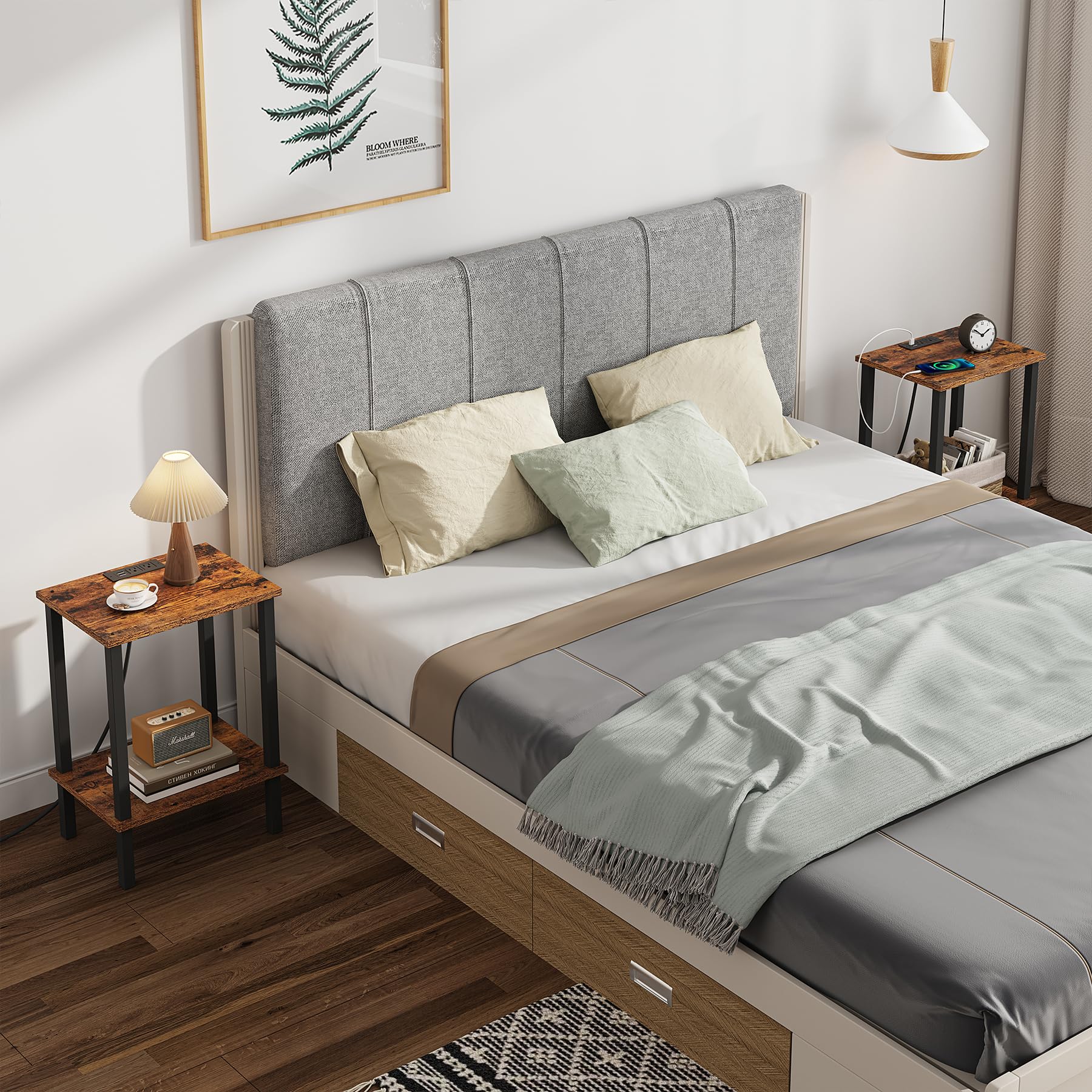 TUTOTAK End Table with Charging Station, Side Table with USB Ports and Outlets, Nightstand, 2-Tier Storage Shelf, Sofa Table for Small Space, 1 Package(2PCS) TB01BB041