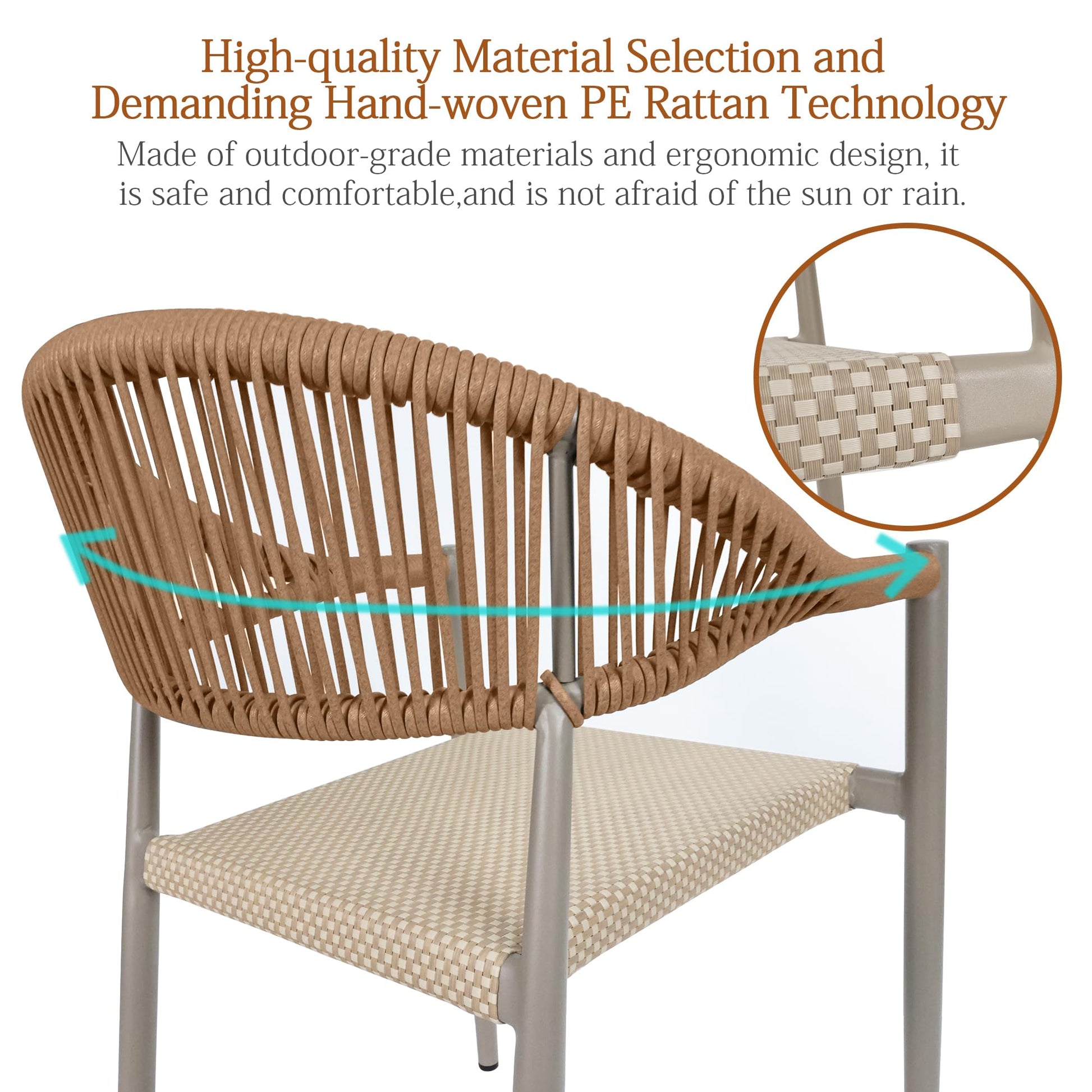 - Robust Construction: Featuring a powder-coated aluminum alloy frame, these rattan outdoor dining chairs provide a sturdy foundation. The frame, composed of durable and rustproof aluminum, guarantees a high loading capacity of 330 lbs for each chair
