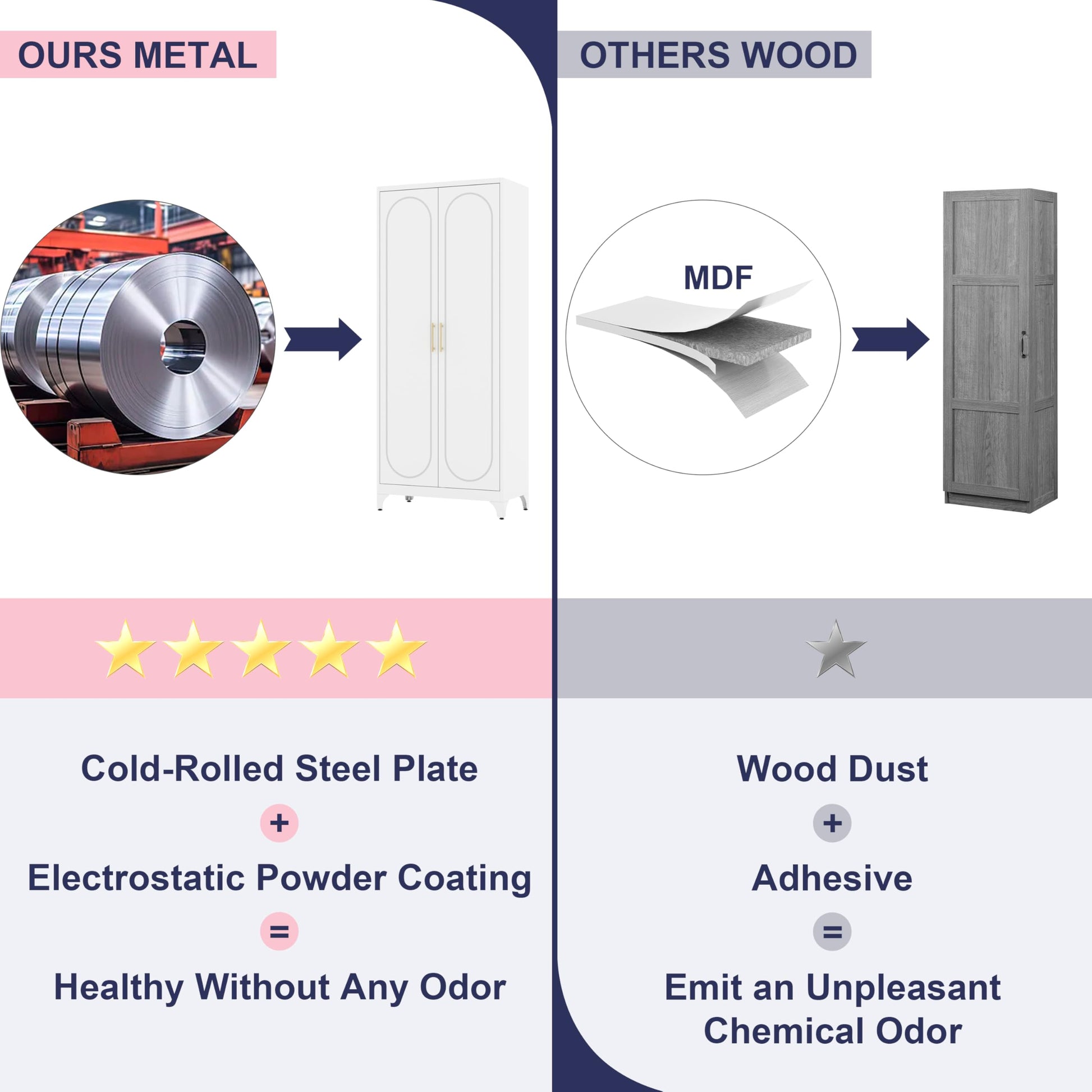 UNICOLY 75" Metal Pantry Cabinet, Storage Cabinet with Doors and Shelves, Cupboard with Adjustable Leveling Foot, for Laundry, Living Room, Dinning Room, Assembly Required, White