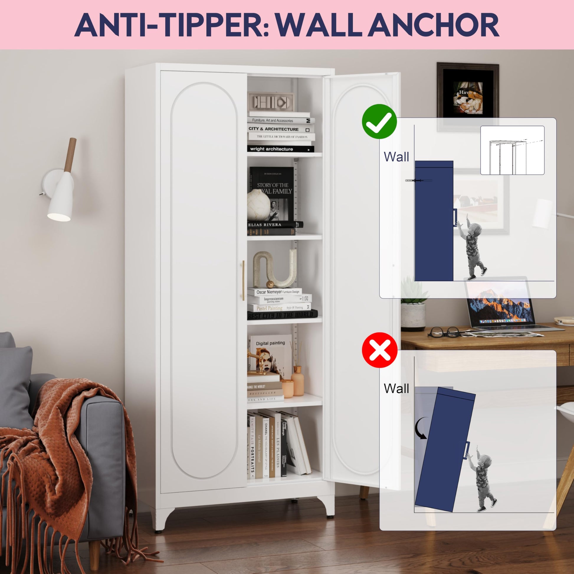 - SECURITY PRACTICAL DESIGN: There are two holes on the back panel of the kitchen storage cabinets. The metal storage cabinet can be securely mounted on the wall to prevent tip-over accidents