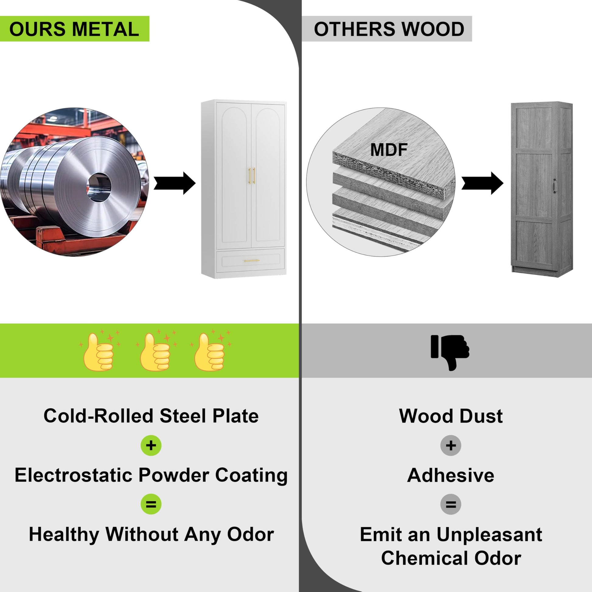 - MATERIAL: UNICOLY Wardrobe closet is crafted from cold-rolled steel plate (SPCC), ensuring it is sturdy and durable. Steel plates are covered with an environmentally friendly powder coating. Compared to traditional wooden or plastic cabinets, Large wardrobe closet are corrosion-resistant, easy to clean and odourless
