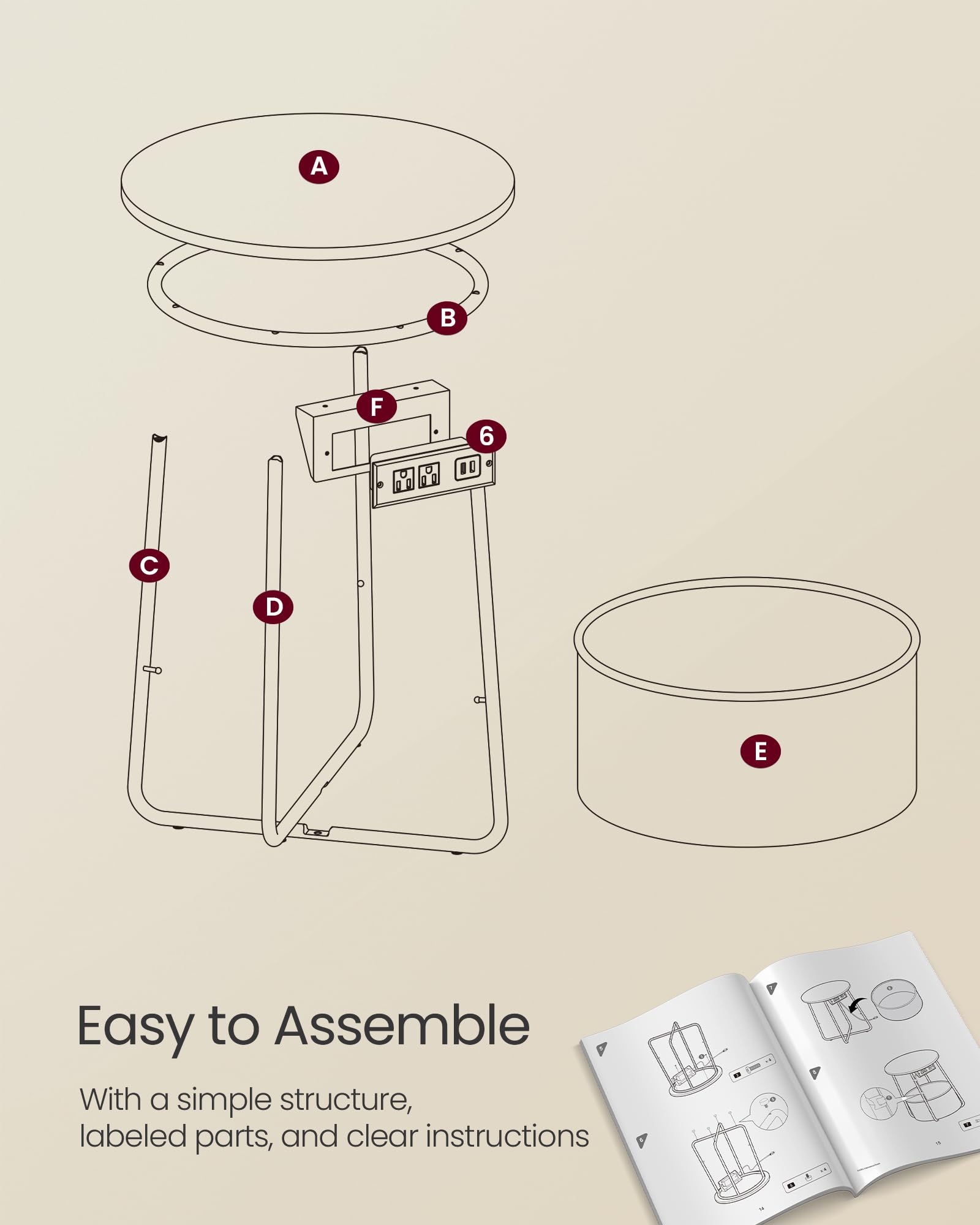 - [Easy Assembly] With its intuitive design, clear instructions, and numbered parts, this side table with charging station can be set up in just 10-15 minutes. Patented Design, No. USD1065896S1