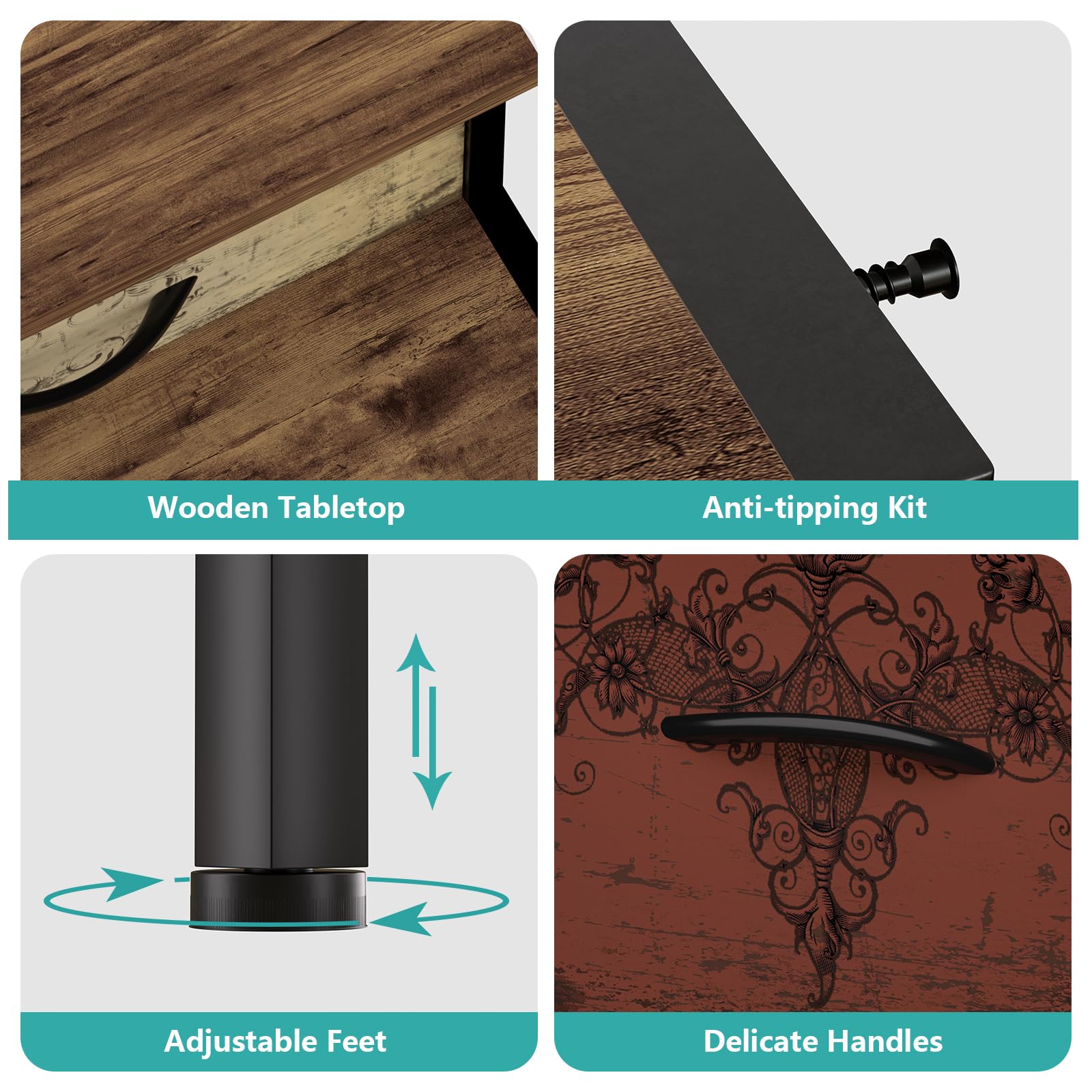- Secure and Sturdy: This 9 drawers dresser is made of durable steel frame and wood top. The drawers are made of high-quality fabric with hard MDF boards. Anti-tip kits are equipped to prevent the dresser from dumping. Also, adjustable foot will make it stable in uneven places and protect the floor from scratches