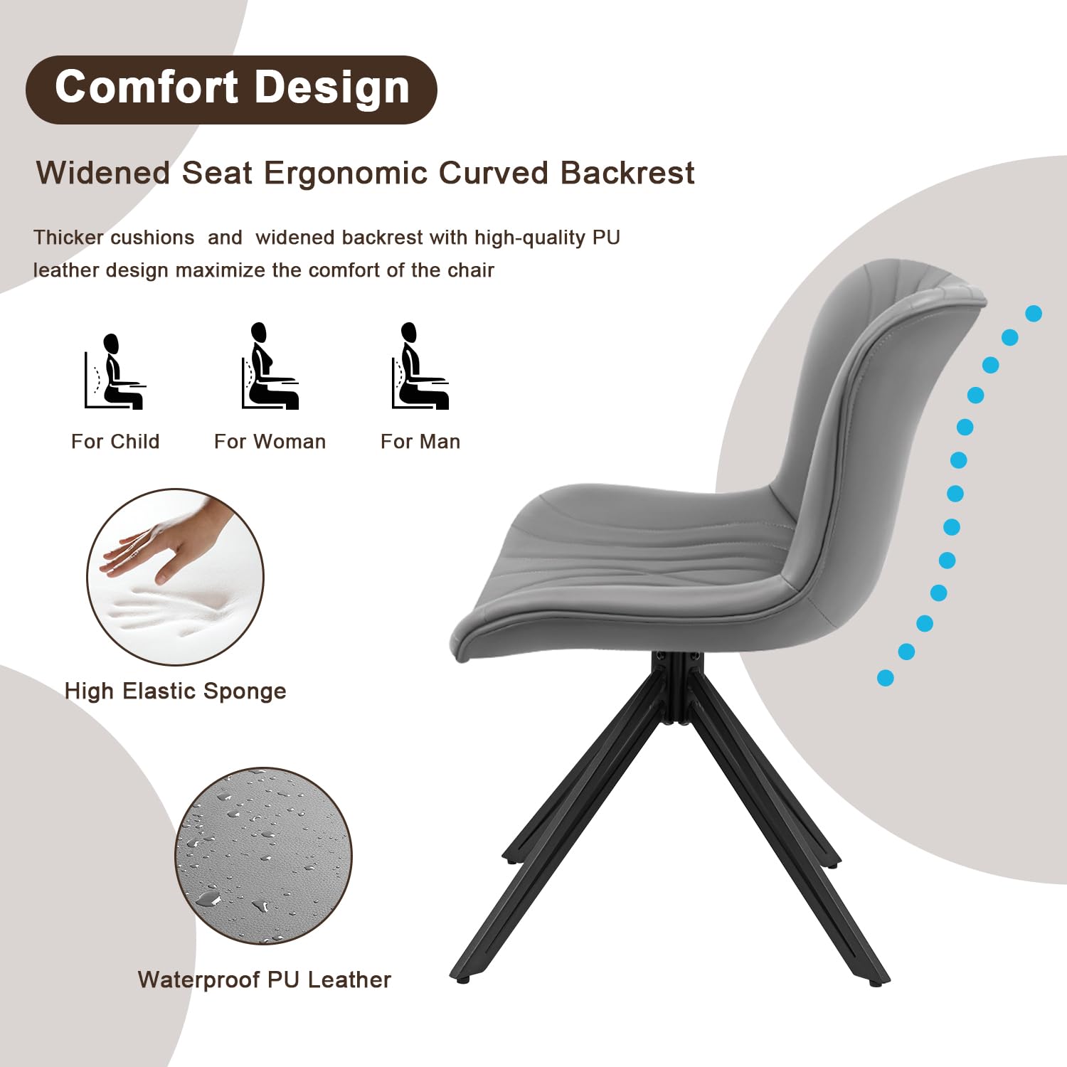 - 【Premium Material】: Crafted from high-quality PU-Leather, our dining chairs are resistant to wear and scratches, and are easy to maintain and clean with a simple wipe of a damp rag. They are also skin-friendly and non-irritating, ensuring a healthy dining experience for you and your loved ones.